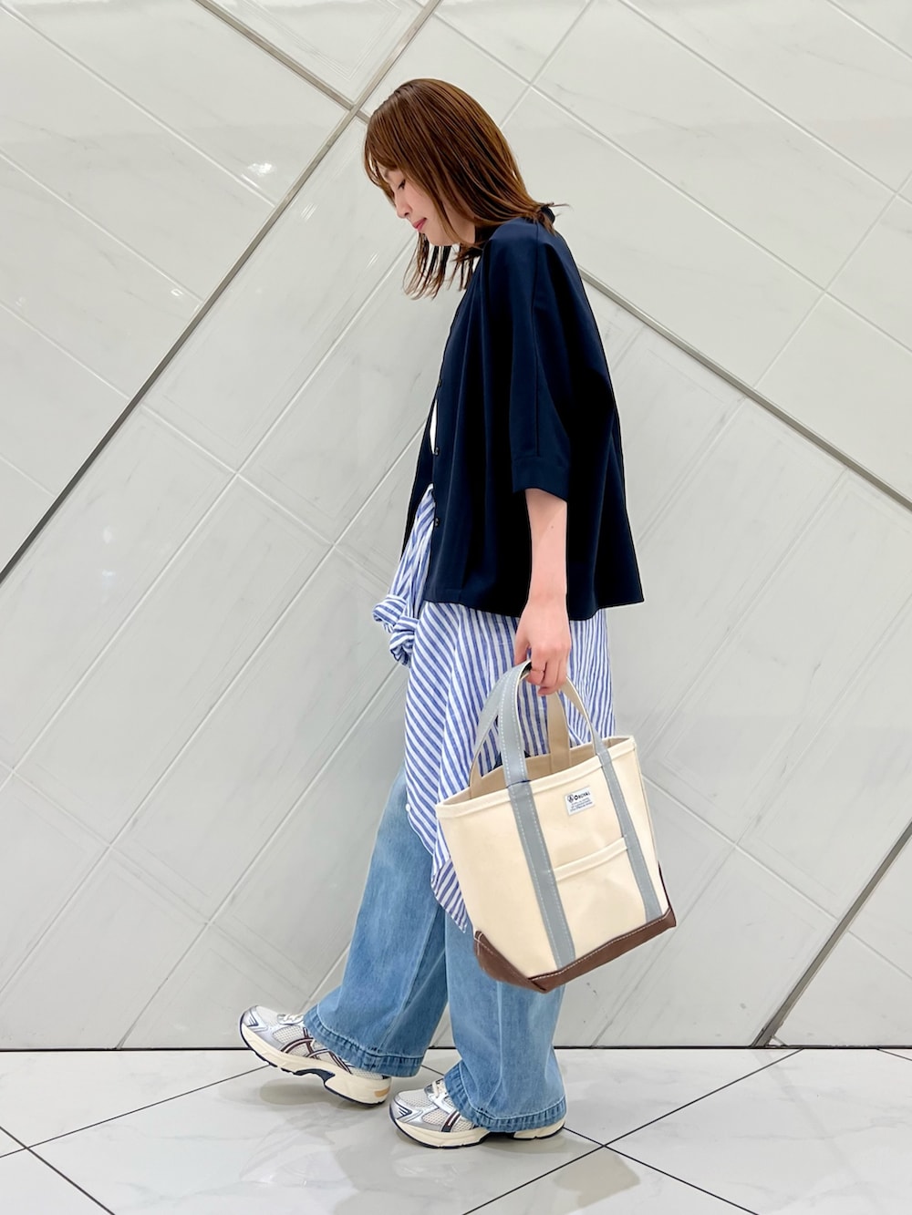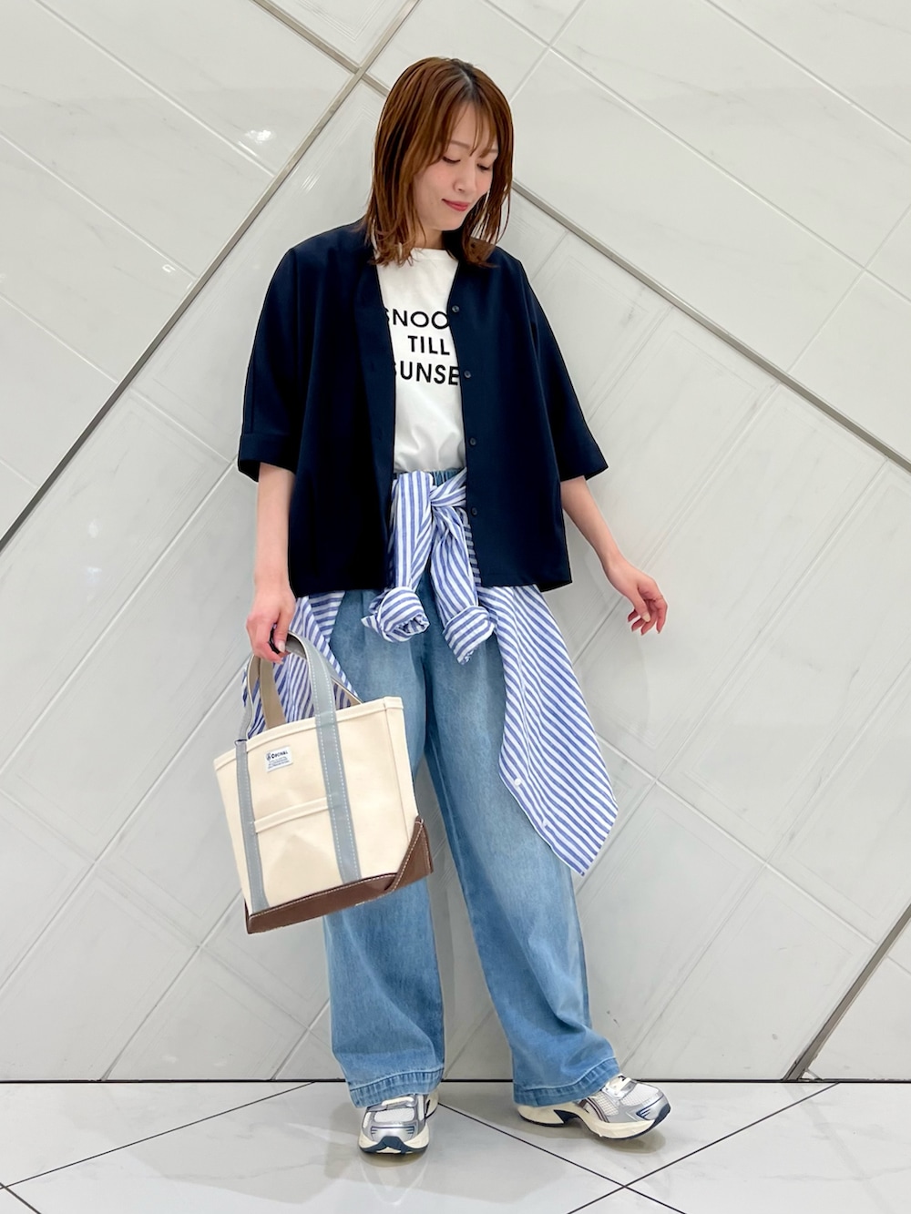 シンプルなロゴTシャツは様々なコーディネートに