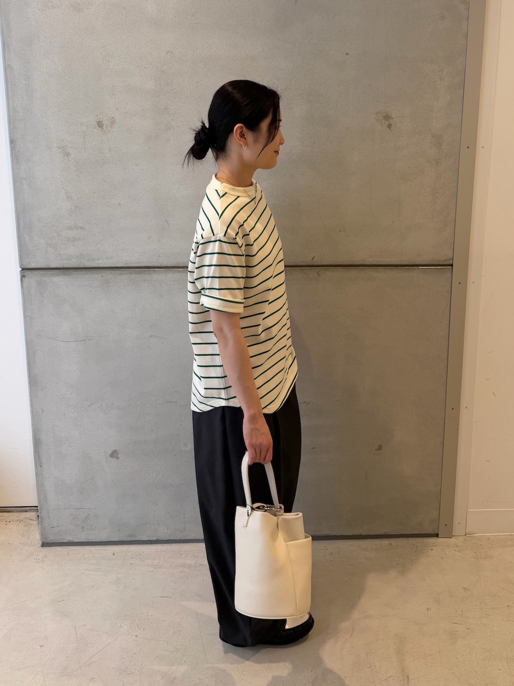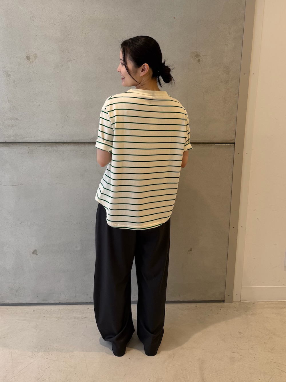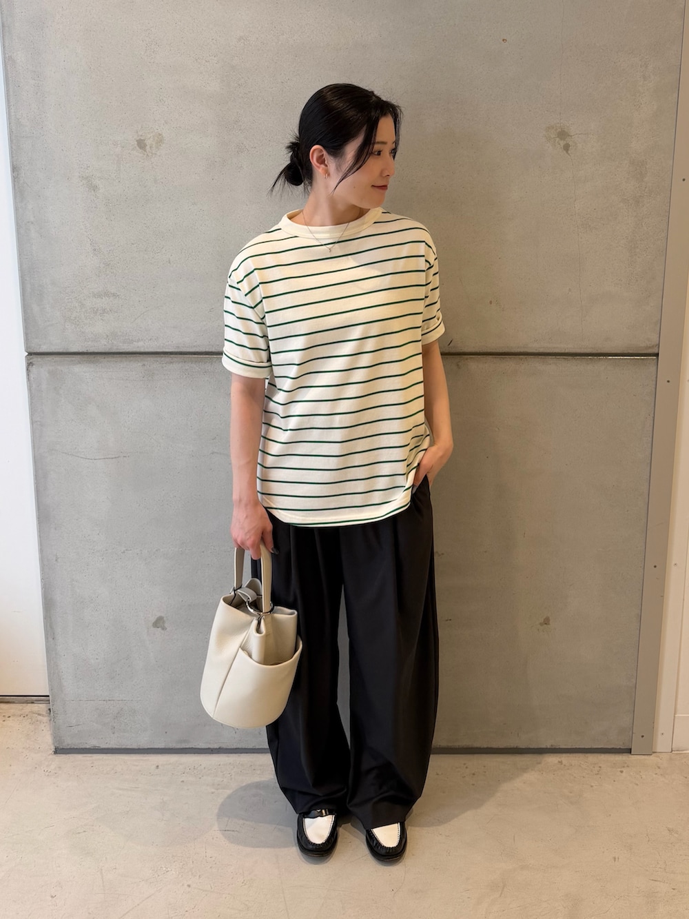 トップスはFREEサイズで、骨格的に袖を折るほうがスッキリ見えるため、袖を2回折り返して着ています!