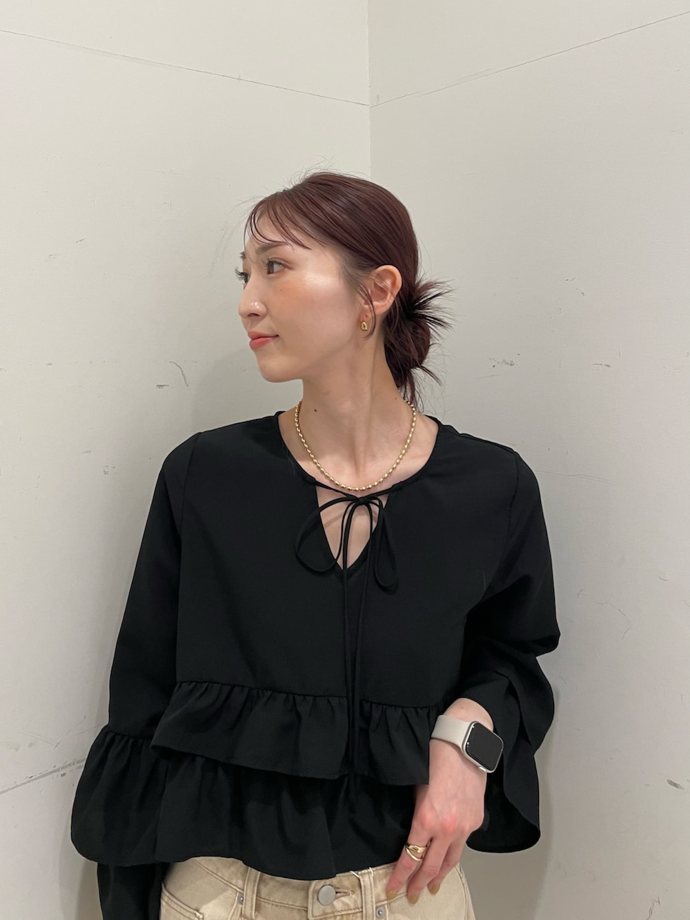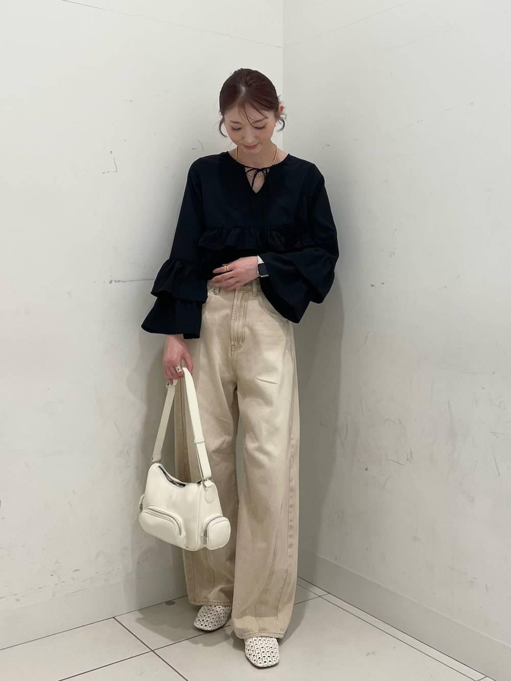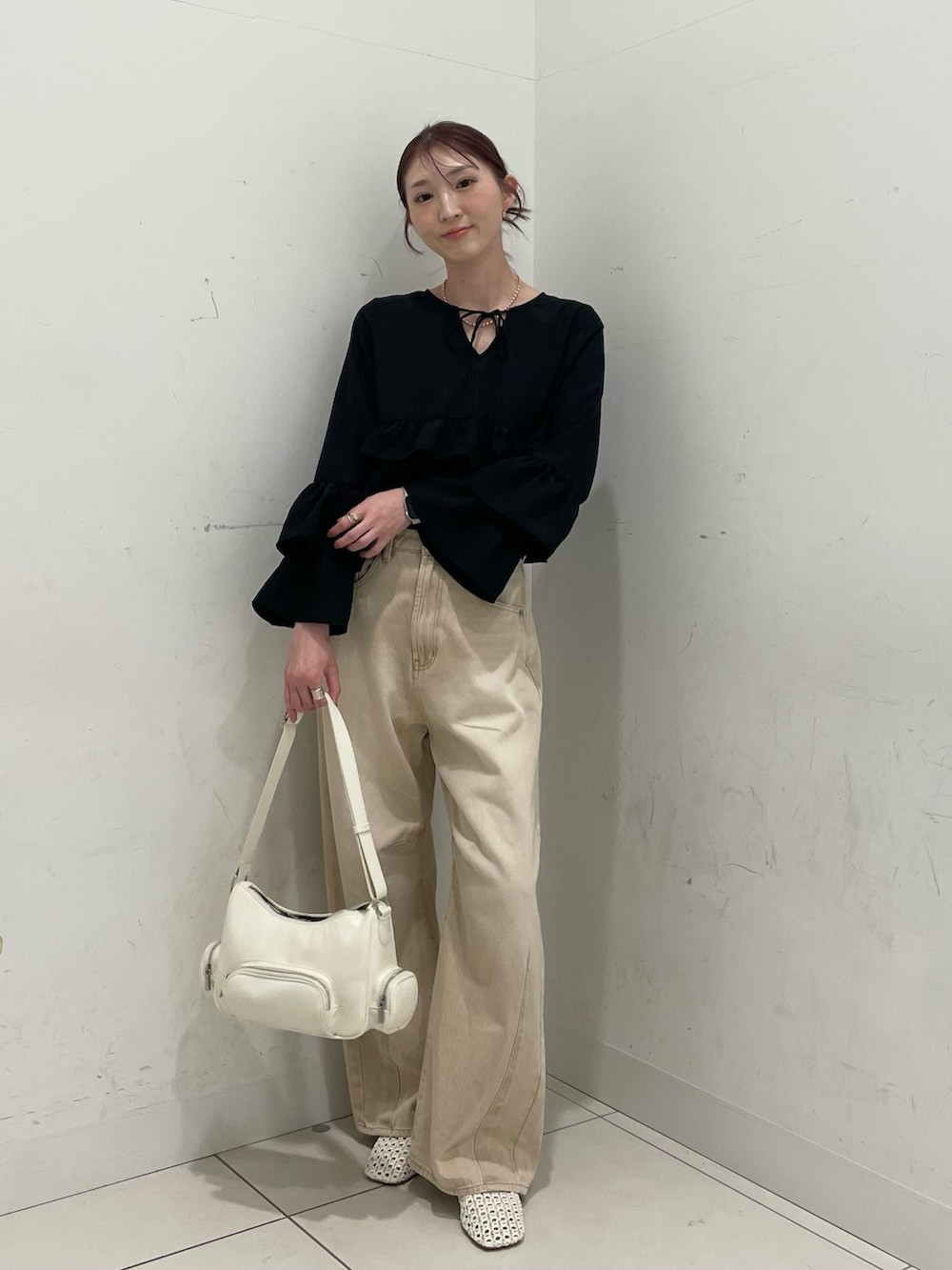 シワになりにくいブラウスでクロップド丈なのでスタイルアップにも✨