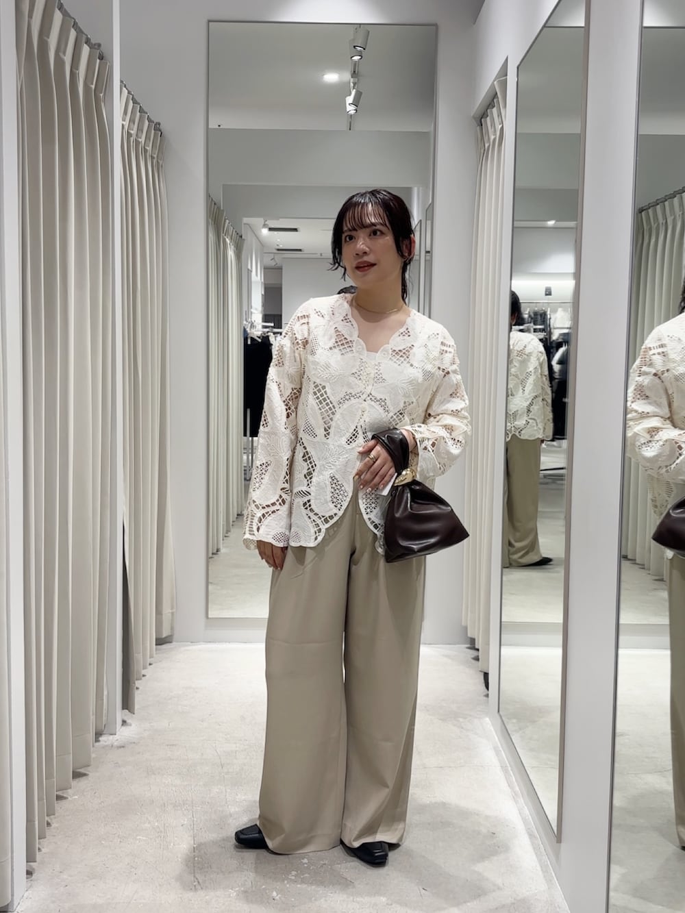 ジャケット▶︎透かし編みレースのしっかりしたジャケットで、ノーカラーのVネック仕様なので骨ストさんは特に綺麗に着ていただけると思います!
