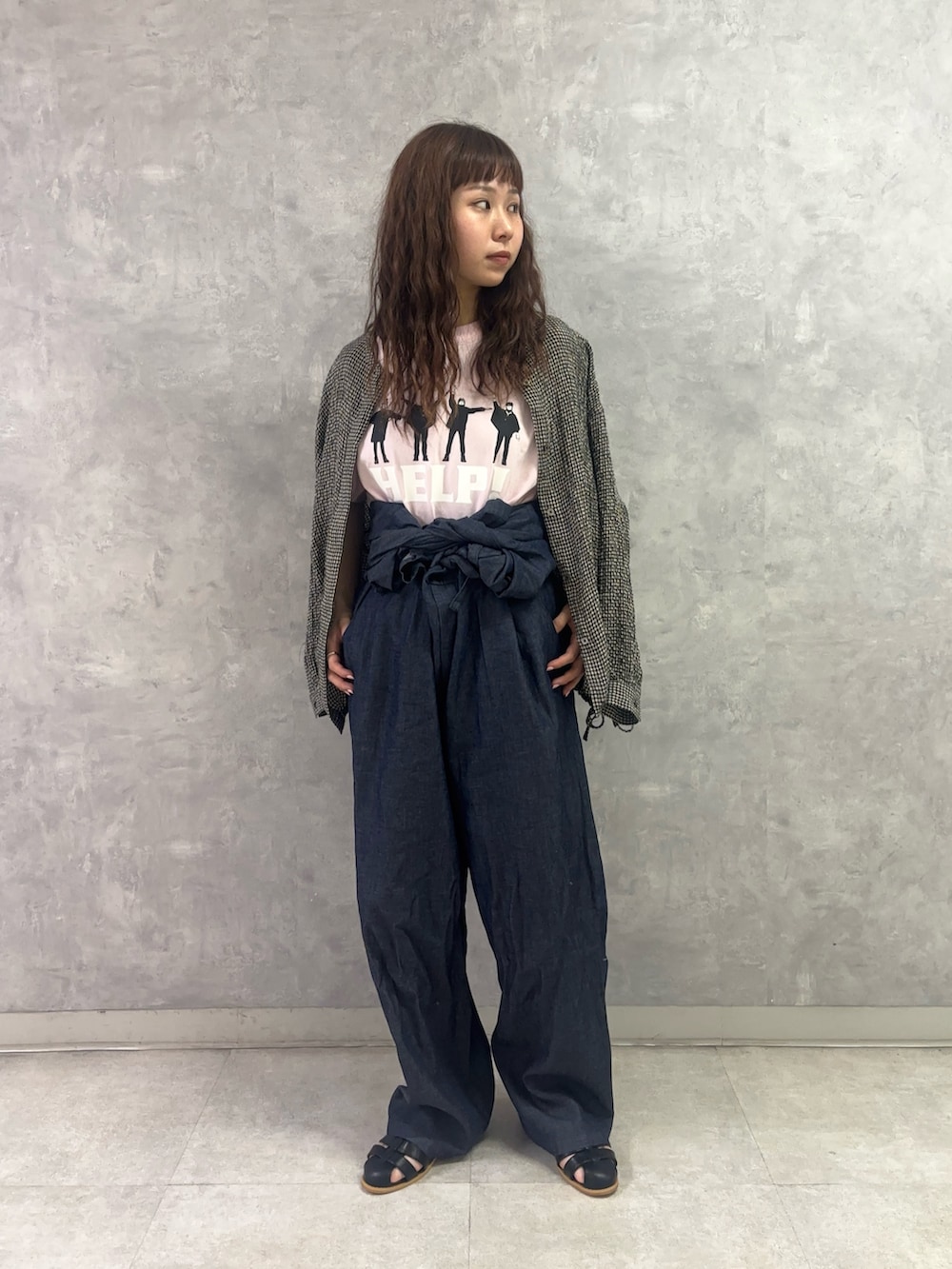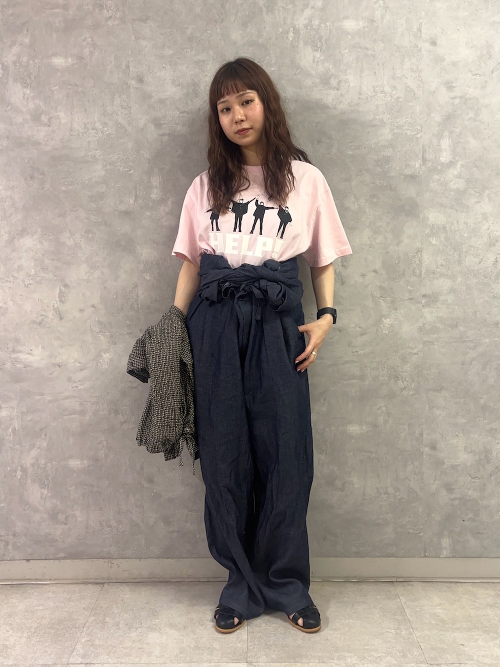 オールインワンは1枚で着るだけでなく、腰巻きにすると色々なトップスとの合わせを楽しめるのでおすすめです!