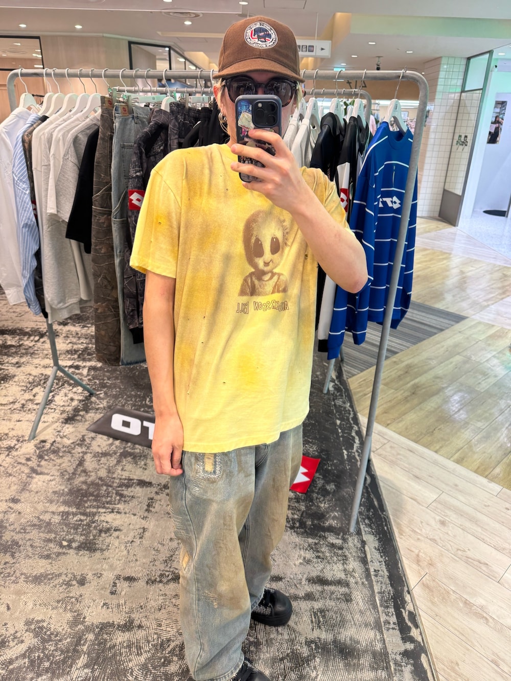 デニムは土汚れの加工もされているので、黄色のアイテムと色の相性バッチリです!
