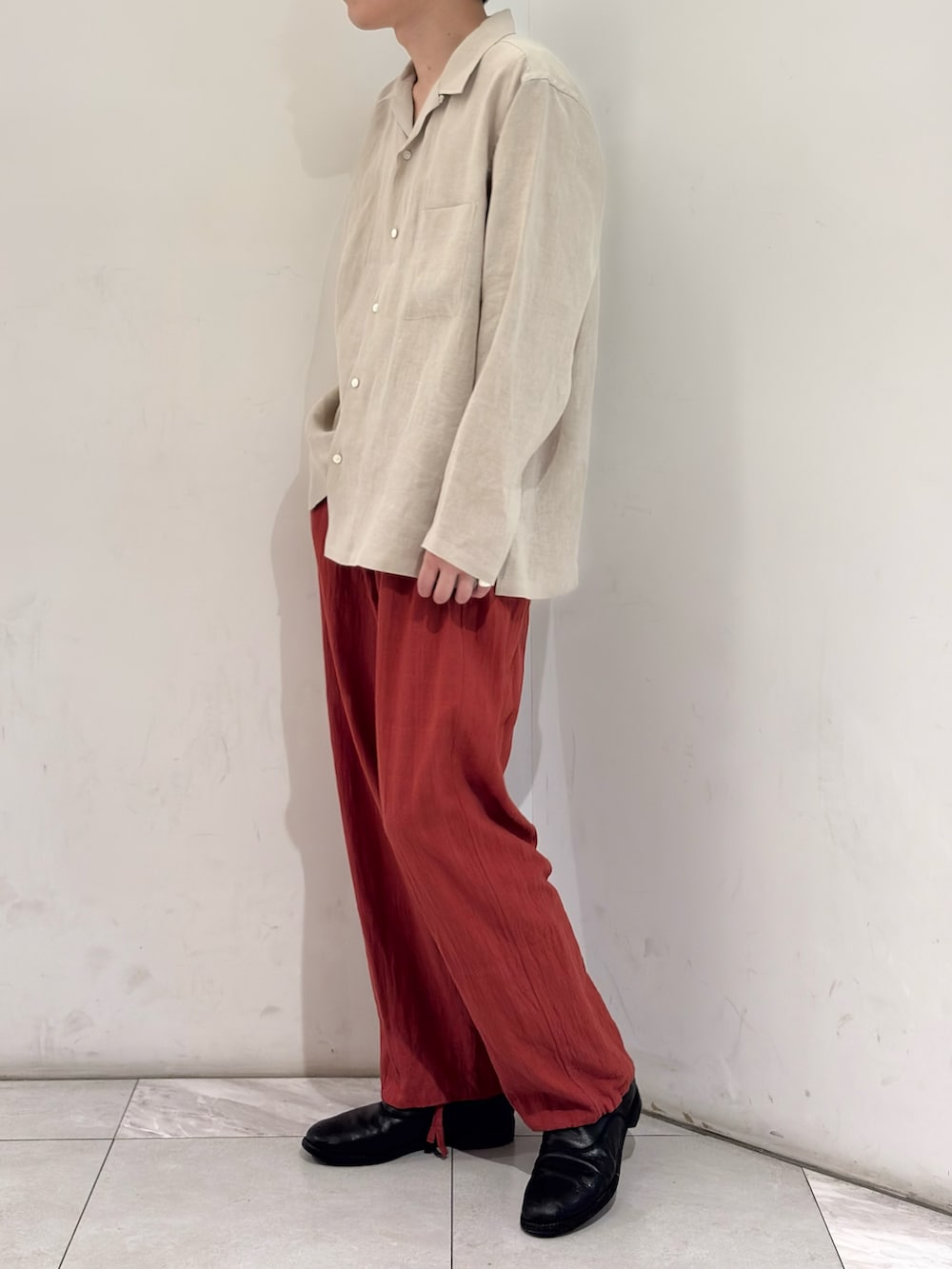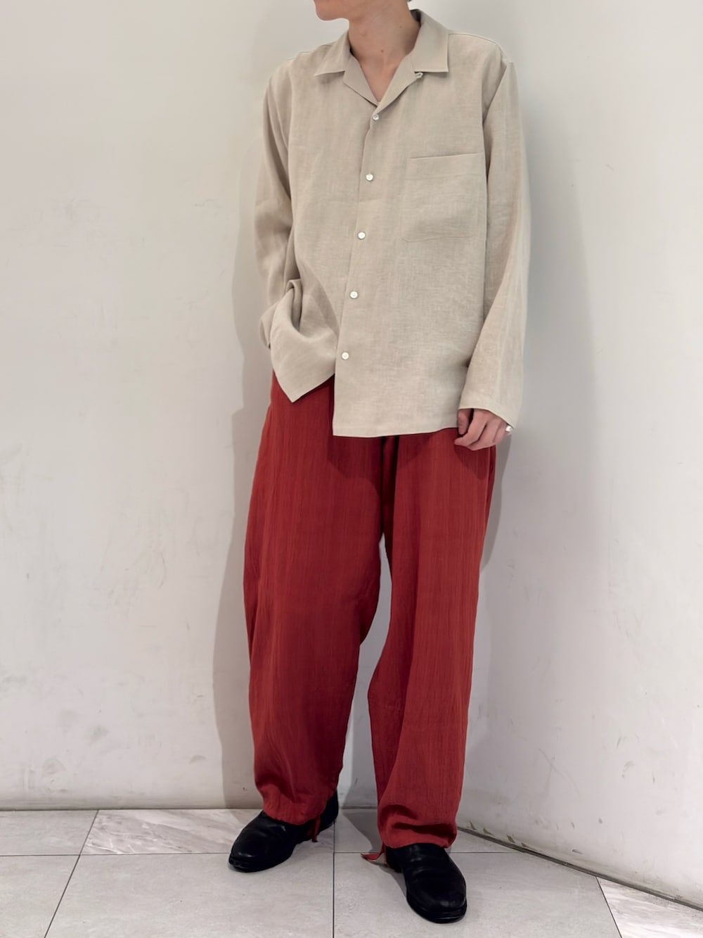デザインはクルタパンツをリファレンス。しかし、サイドはセーラーパンツのサイド開き仕様に。南アジアとヨーロッパの異文化交流です。どちらの良さを上手く掛け合わせ、落とし込む。脱帽です。流石です。
