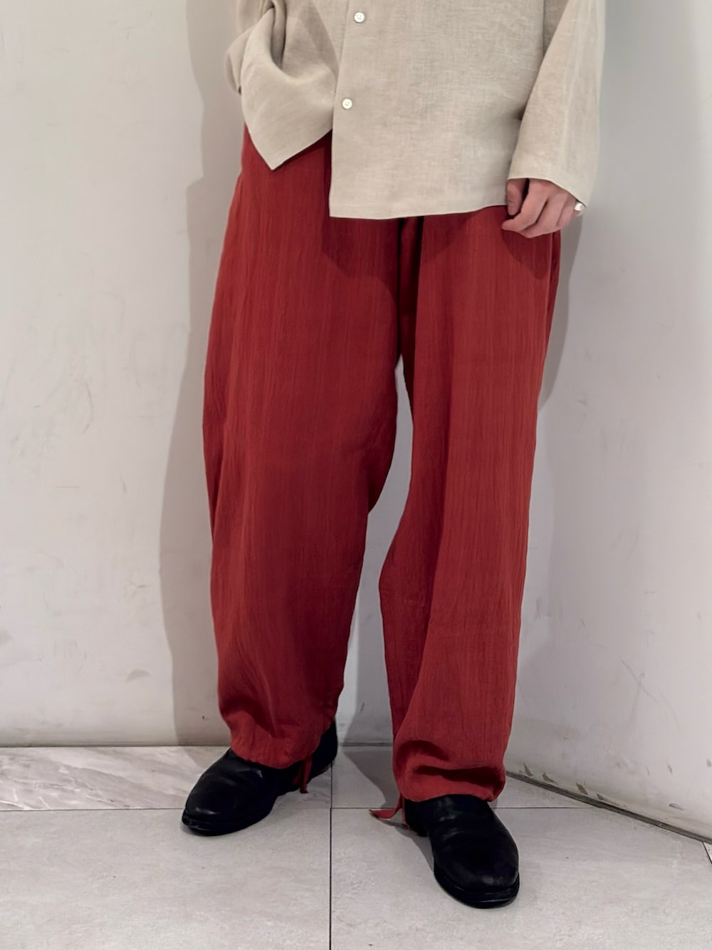 赤パン。目に飛び込んでくるのは鮮やかな色彩の赤。ただ、このパンツはそれだけじゃないんです。NICENESSらしさがしっかりと詰まった一本なんです。