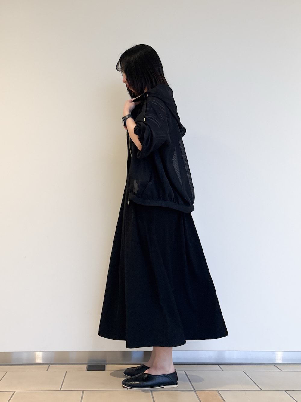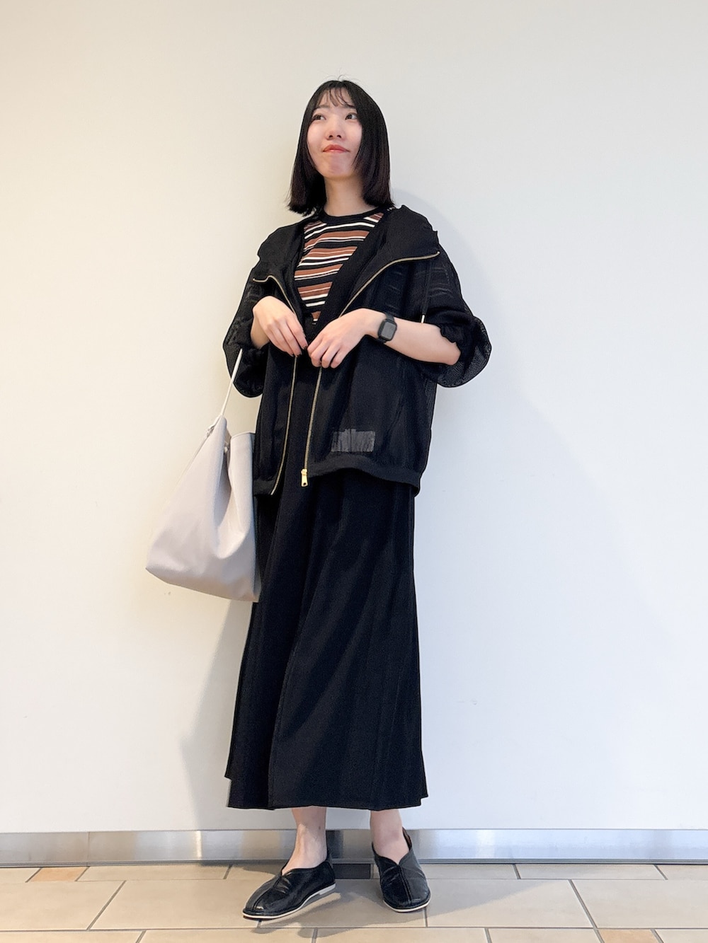 お出かけに必須なアウター。メッシュ素材なので日差しがある時でも羽織りやすく、畳んでもシワになりにくいです^^