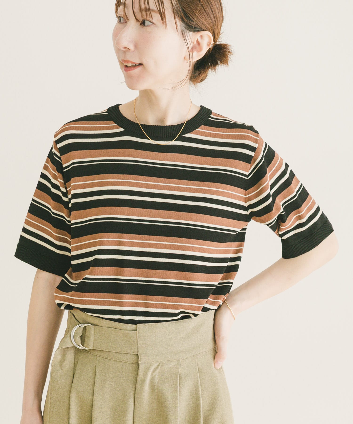 ITEMSマルチボーダー半袖ニット- カラー: