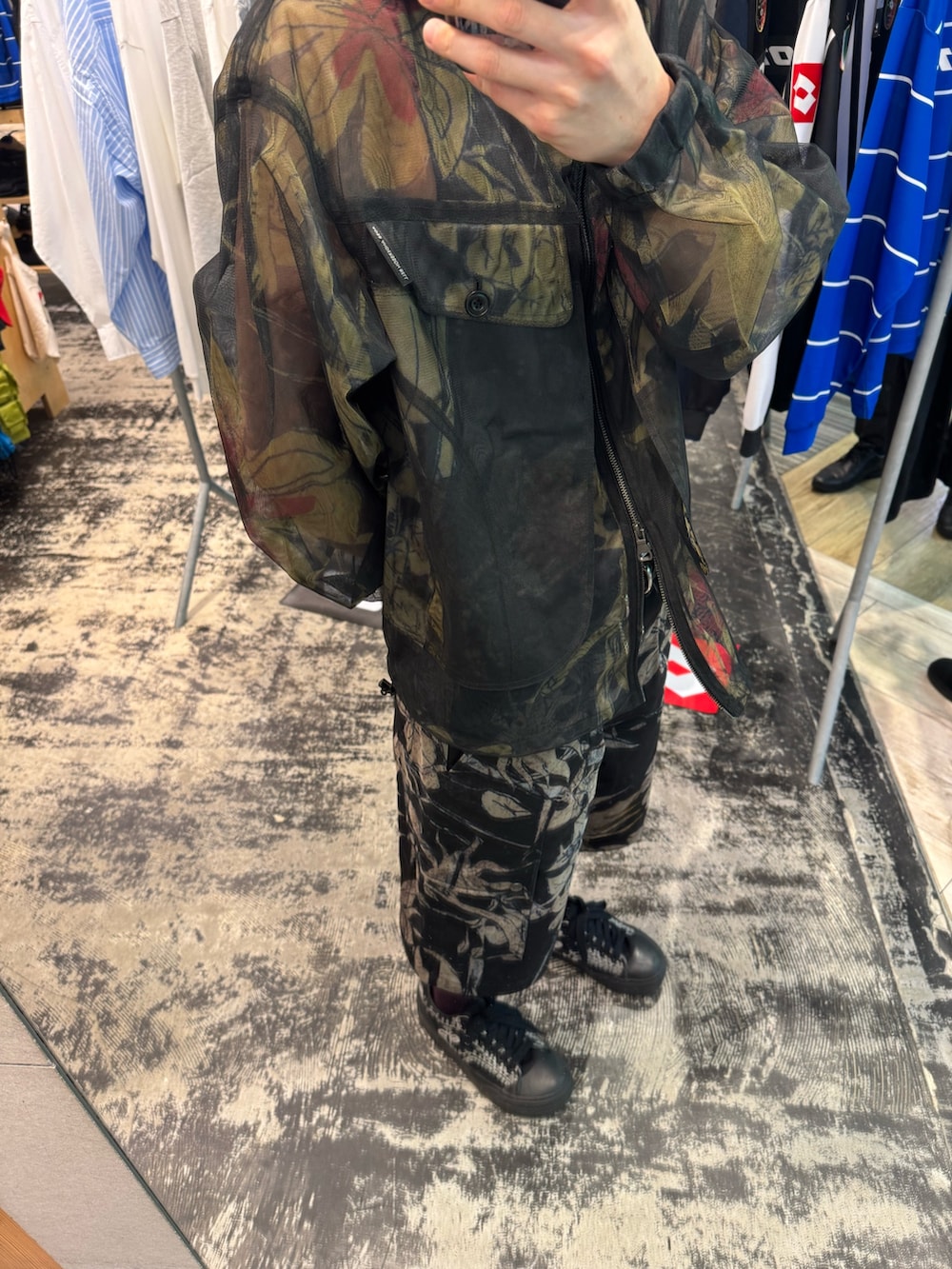 ジャケットの方は、シアーになっているので夏でも着られるジャケットになっています👍