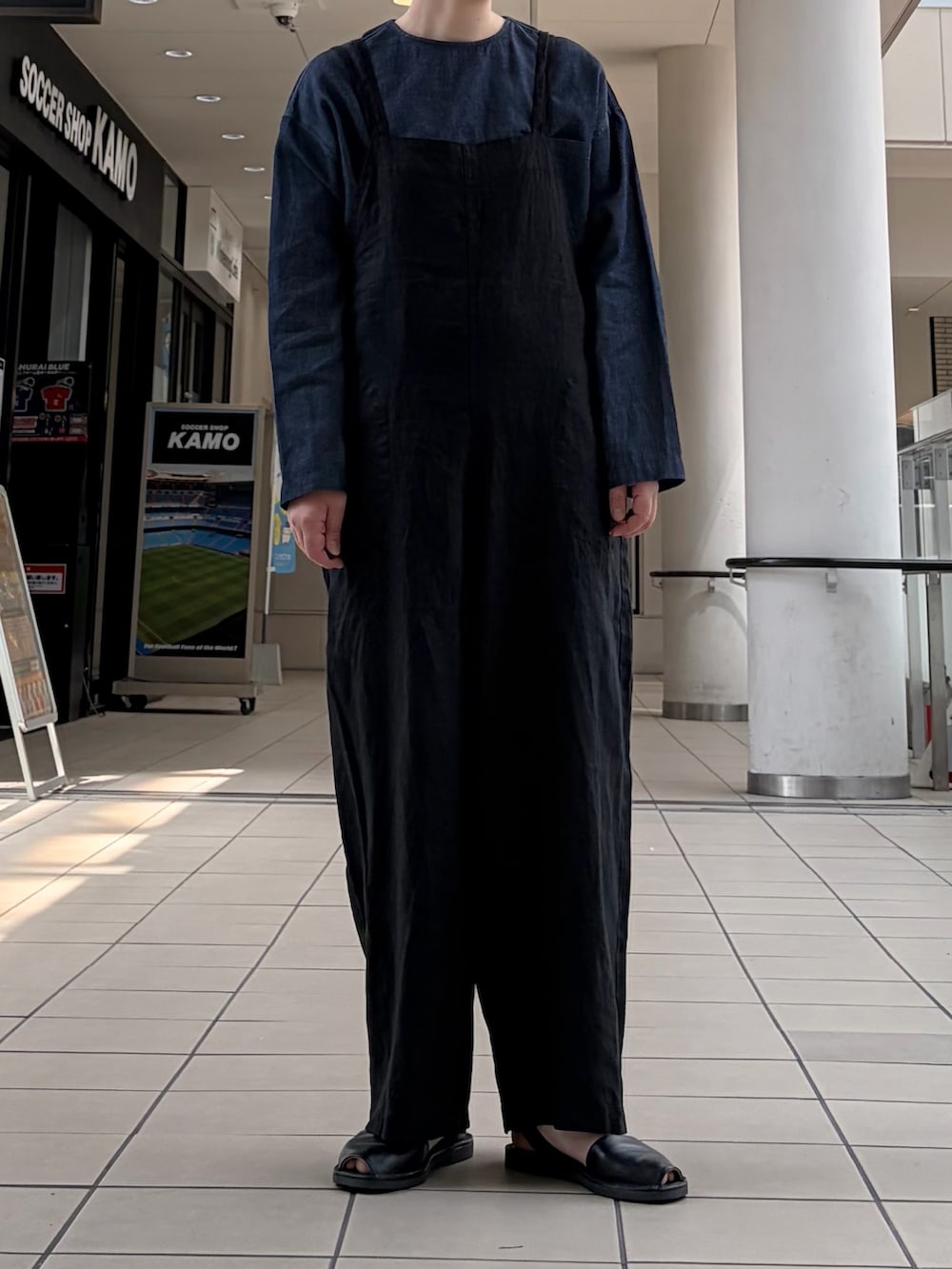 今回はリネンのサロペットと落ち着いた色合いでまとめてみました。サロペットはリネン素材で涼しいです◎