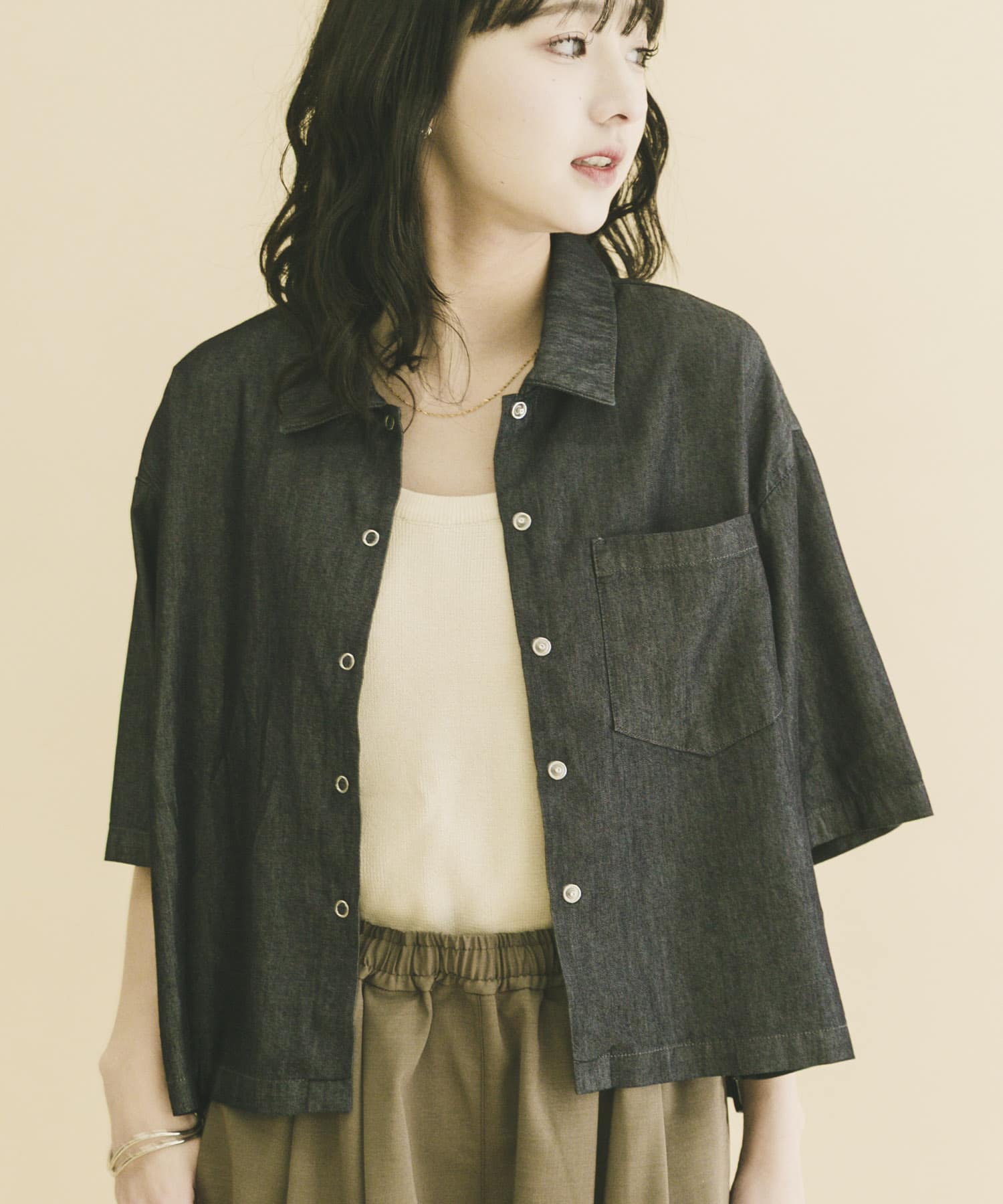 レーヨンデニム半袖シャツ