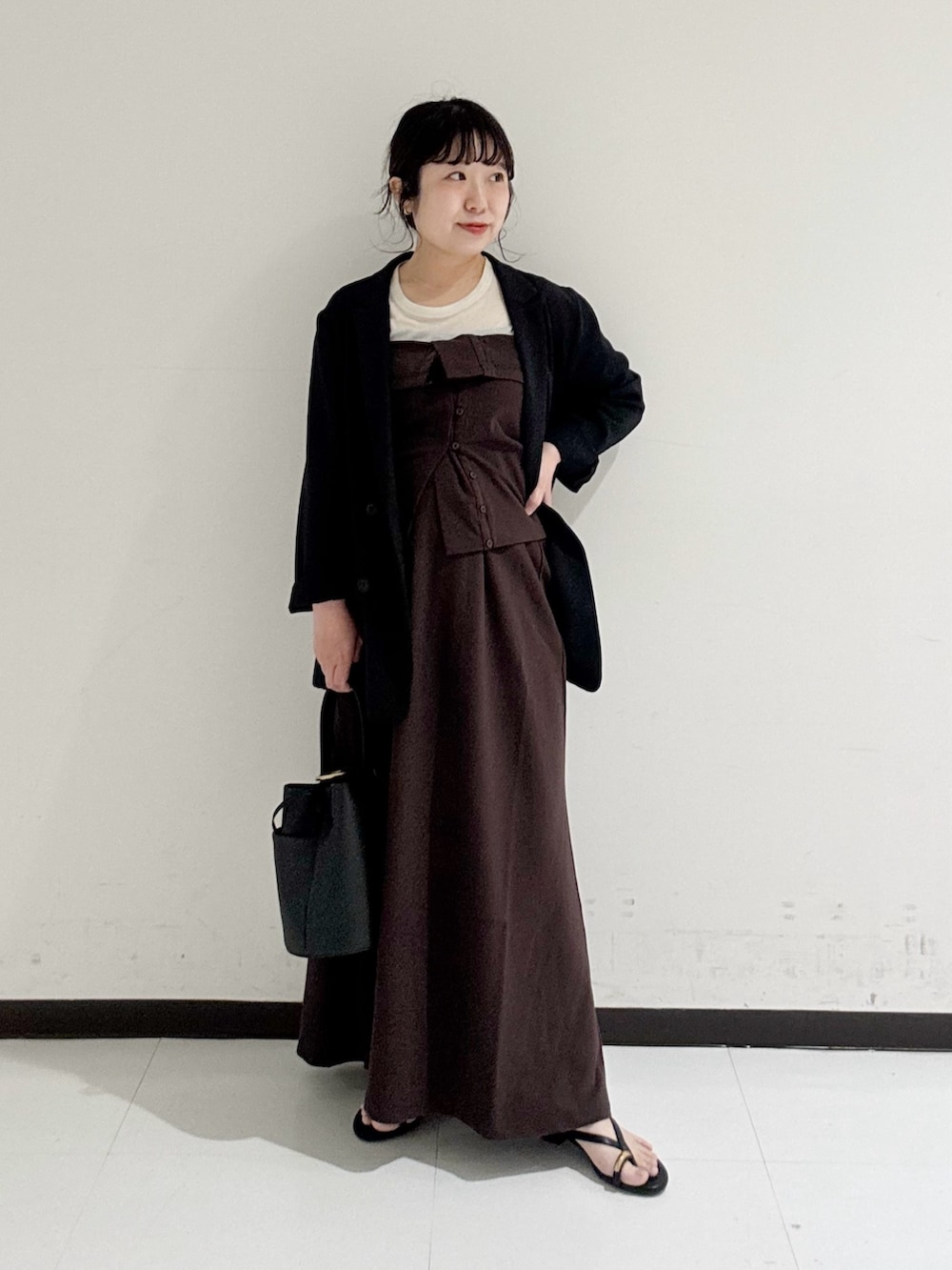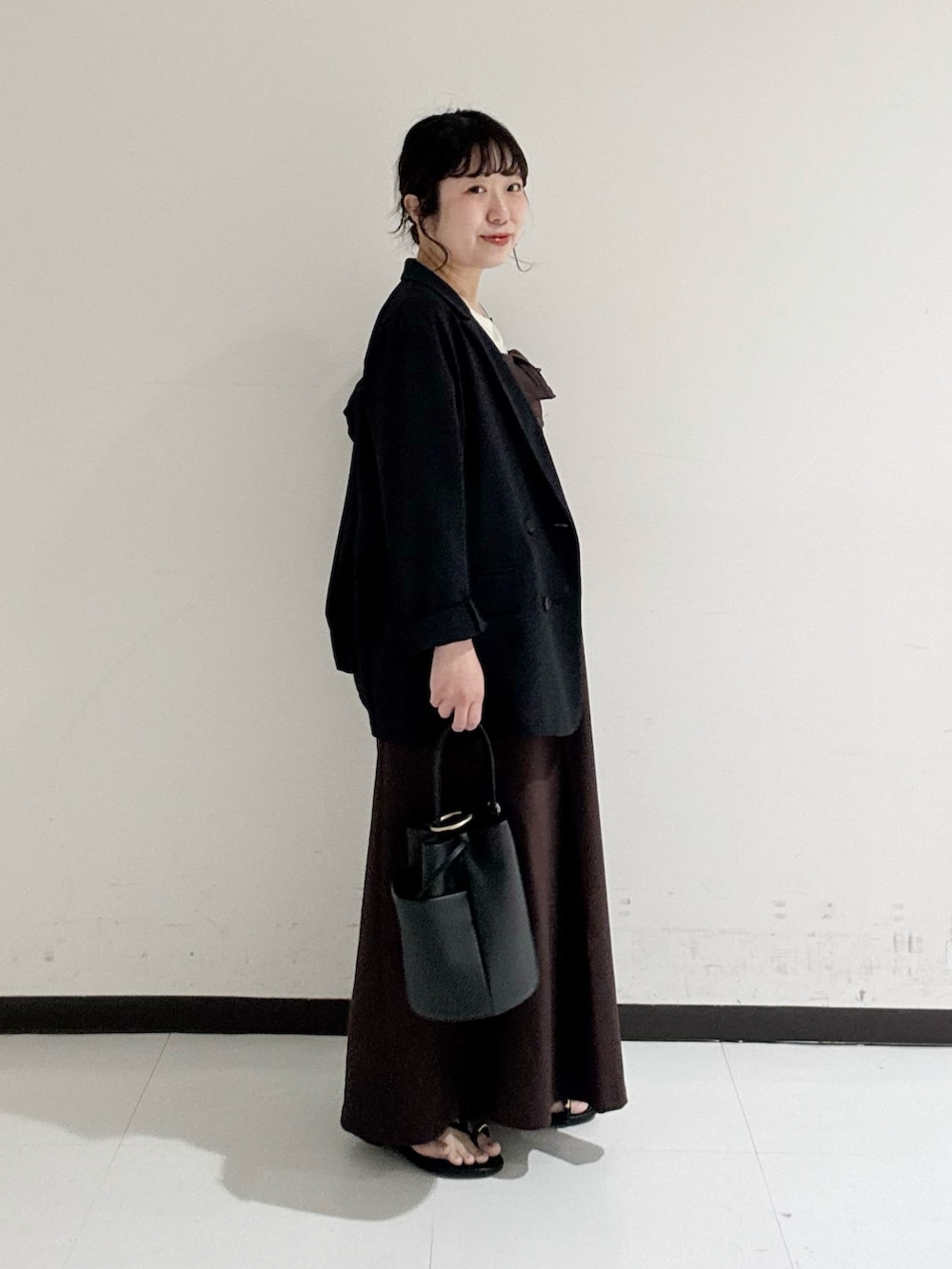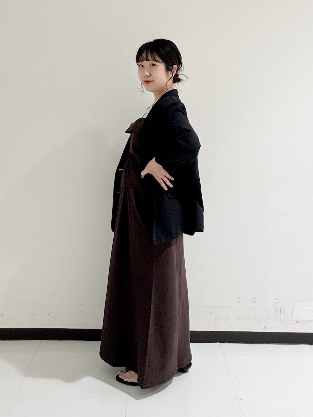 スカートは裾上げ無しで大丈夫でしたので、150cm前半の方でも履いていただけますよ🙆♀️✨