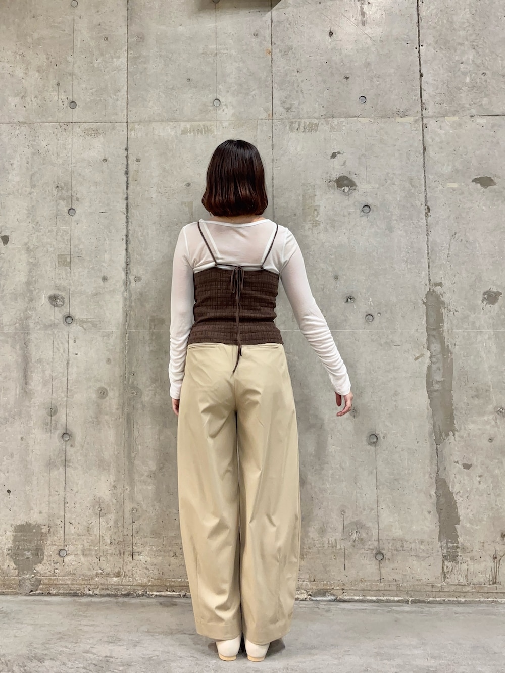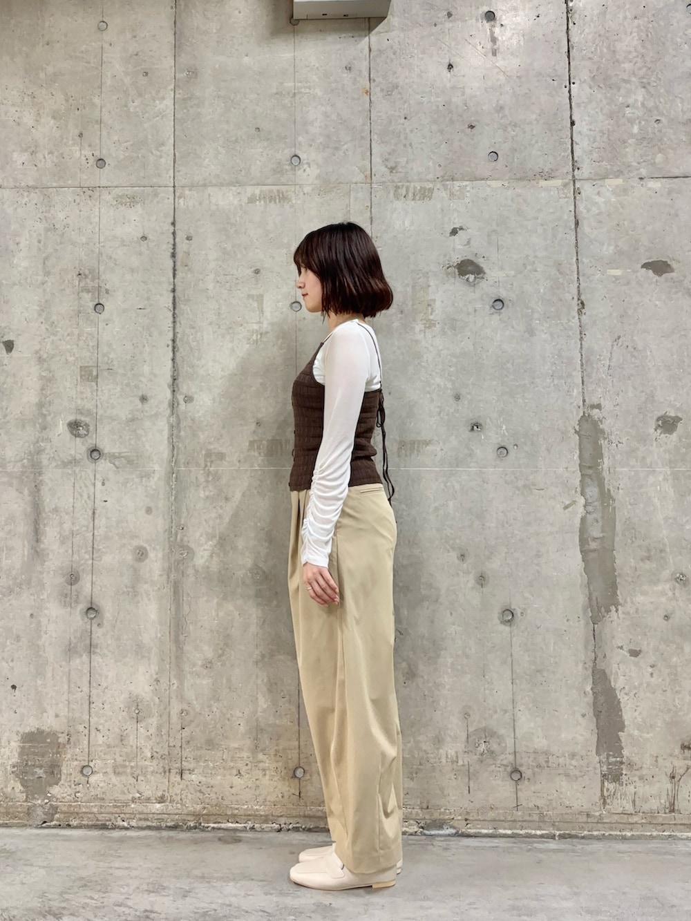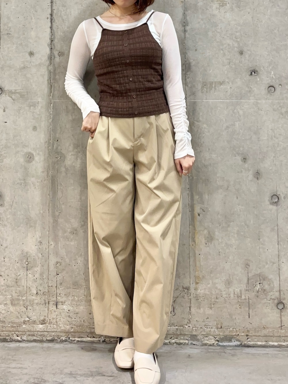 シアーのアイテムで爽やかにしつつ、ビスチェを着用して、一気に引き締まります🤎