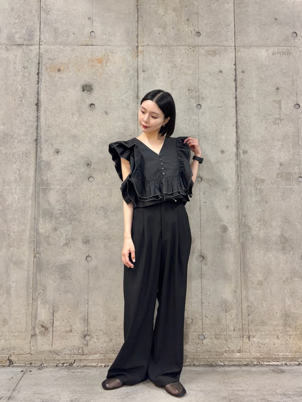 適度な肌見せがブラックコーデのポイント◎
