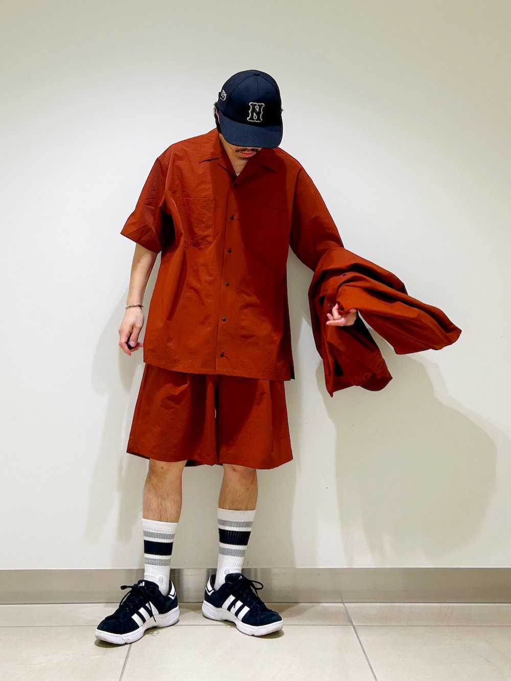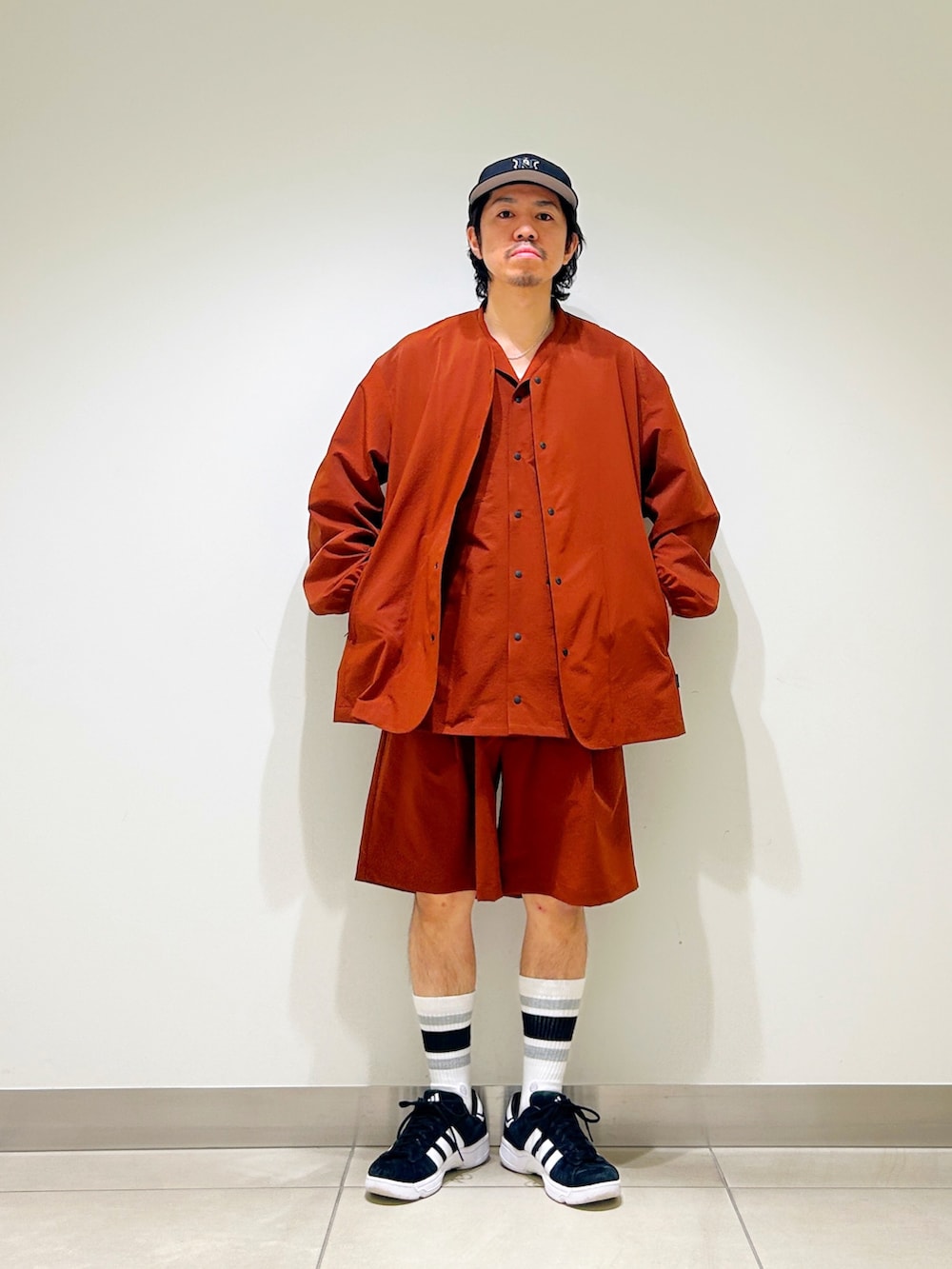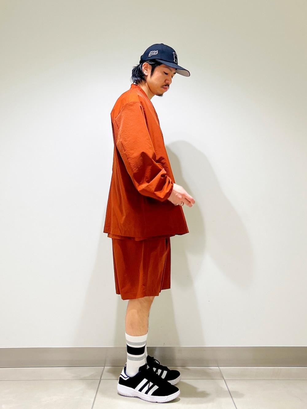 纏うだけで目立つオレンジですが、落ち着いたトーンなのでやりすぎ感がなく、しっかりセットアップで楽しめます!