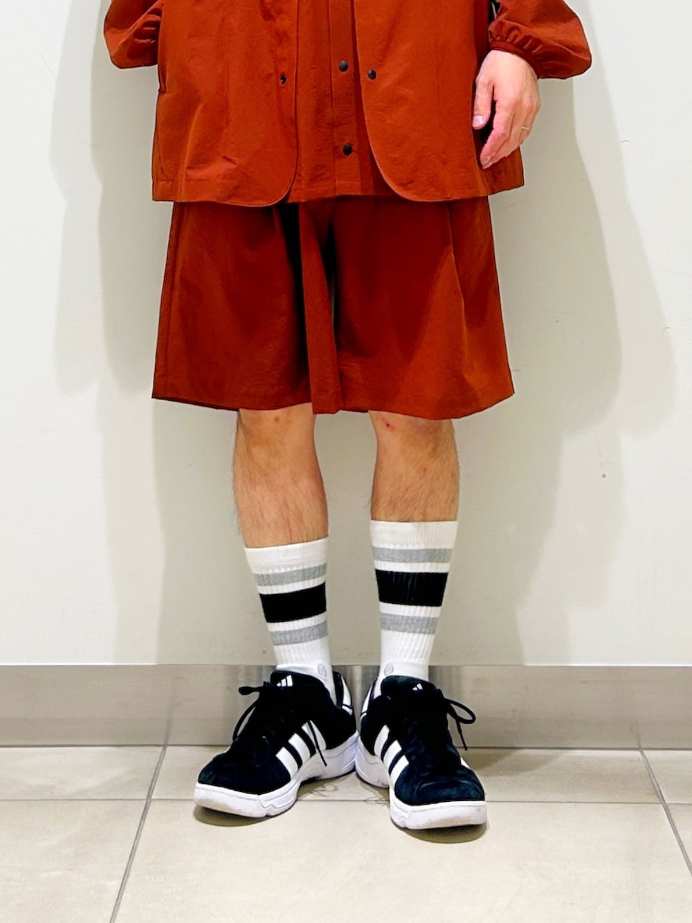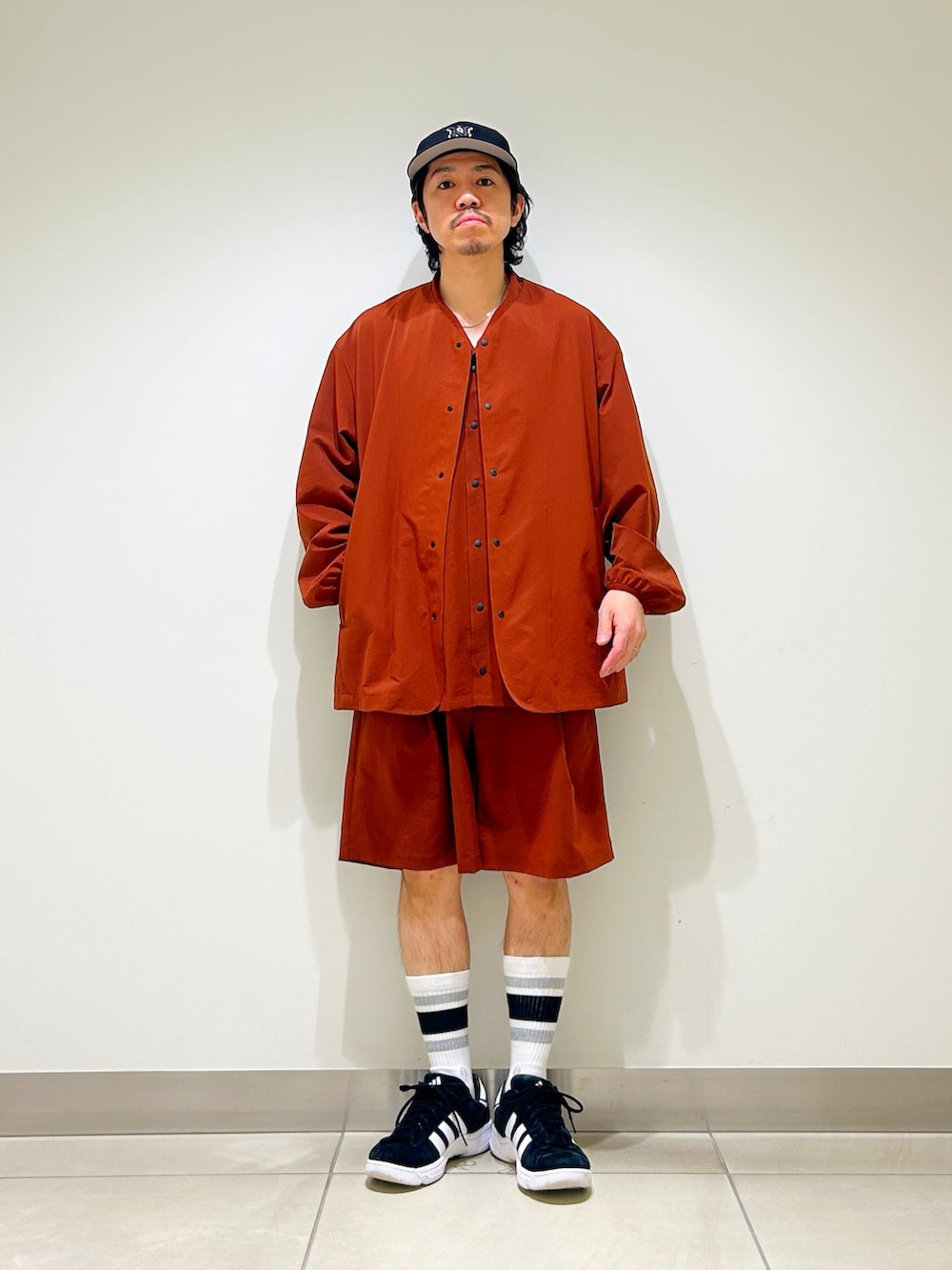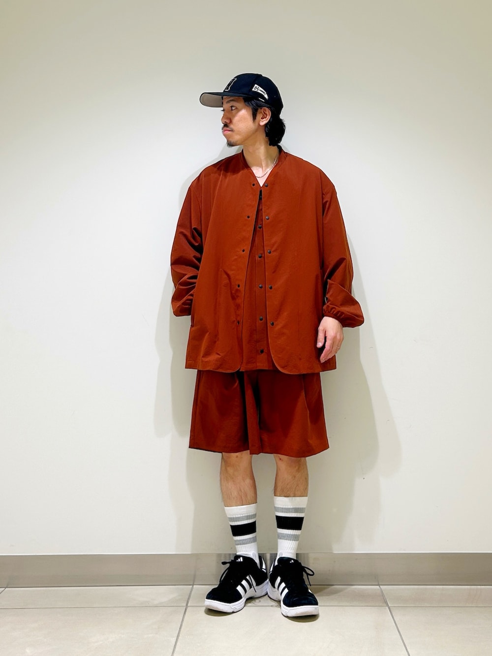 纏うだけで目立つオレンジですが、落ち着いたトーンなのでやりすぎ感がなく、しっかりセットアップで楽しめます!
