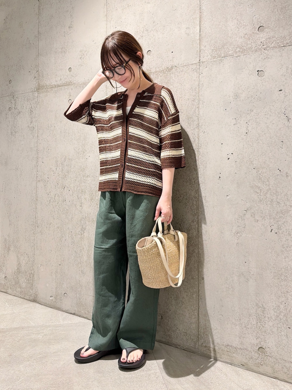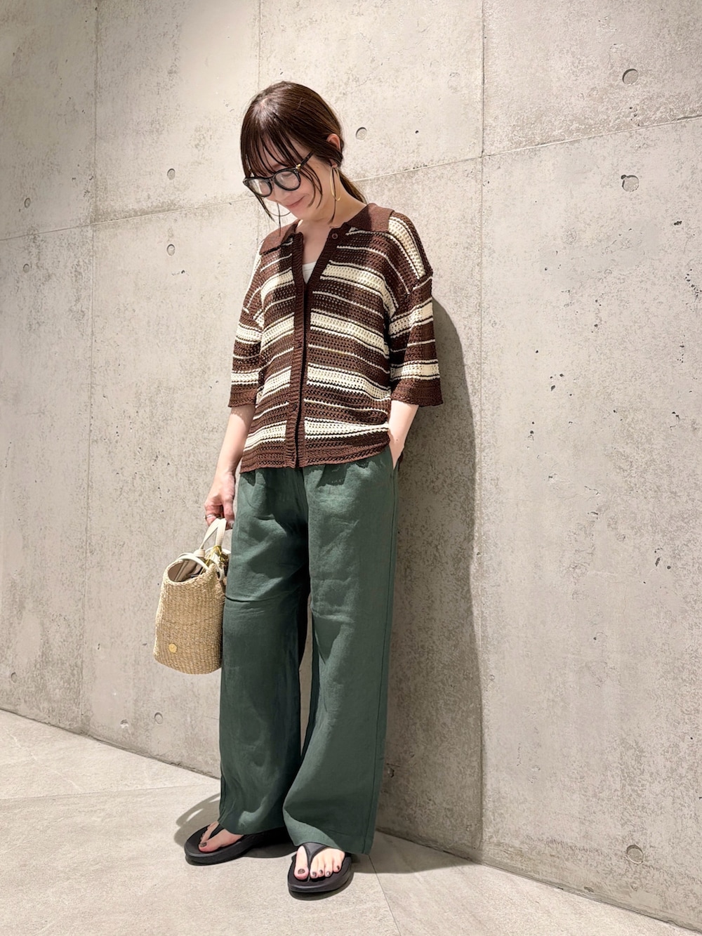 今回は、リネンパンツで合わせたリラックススタイルです。