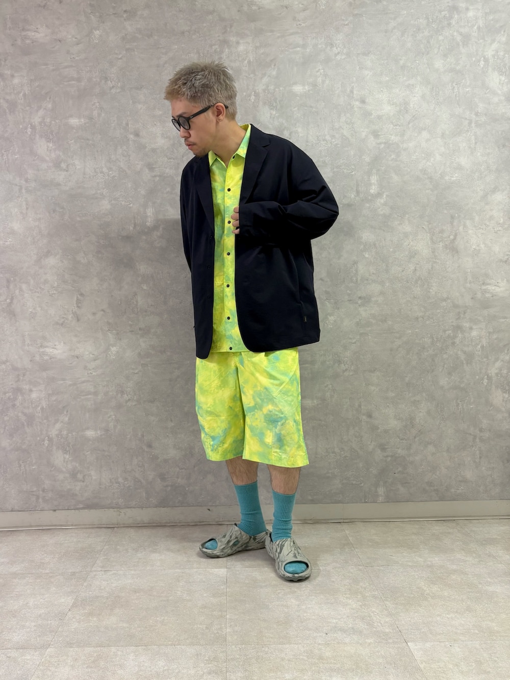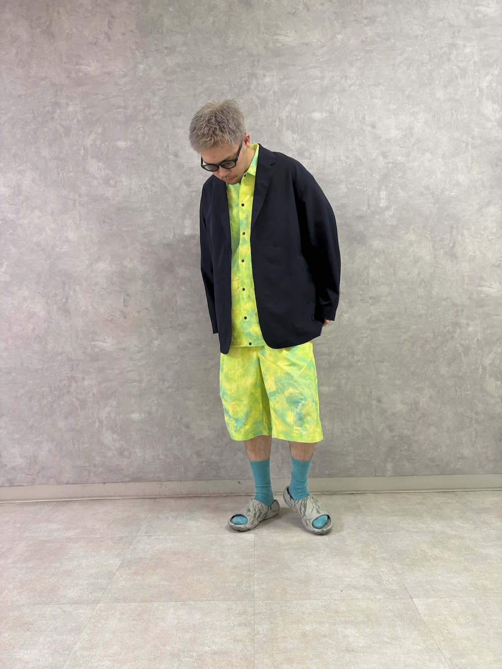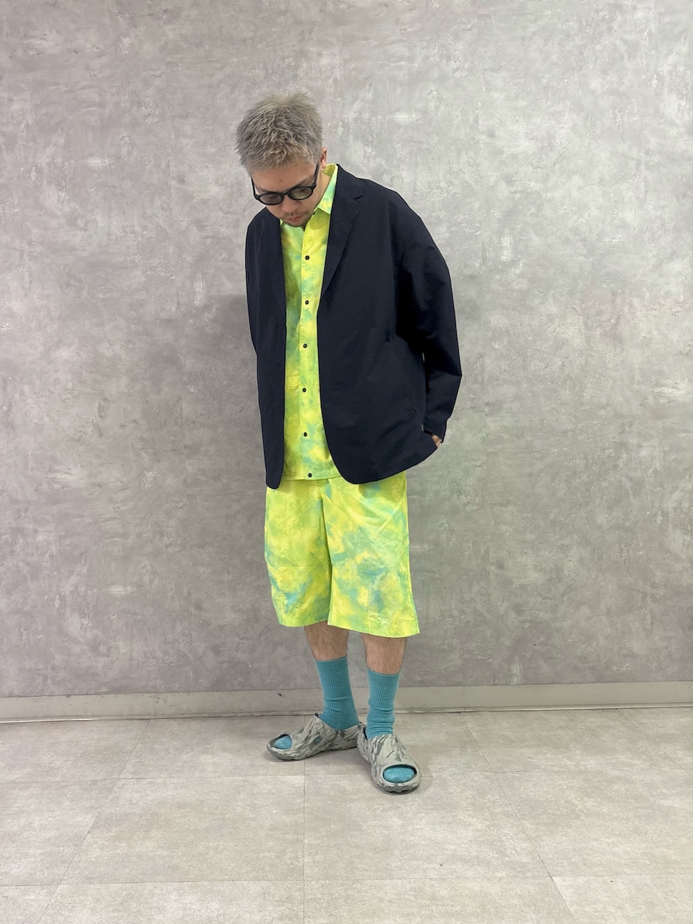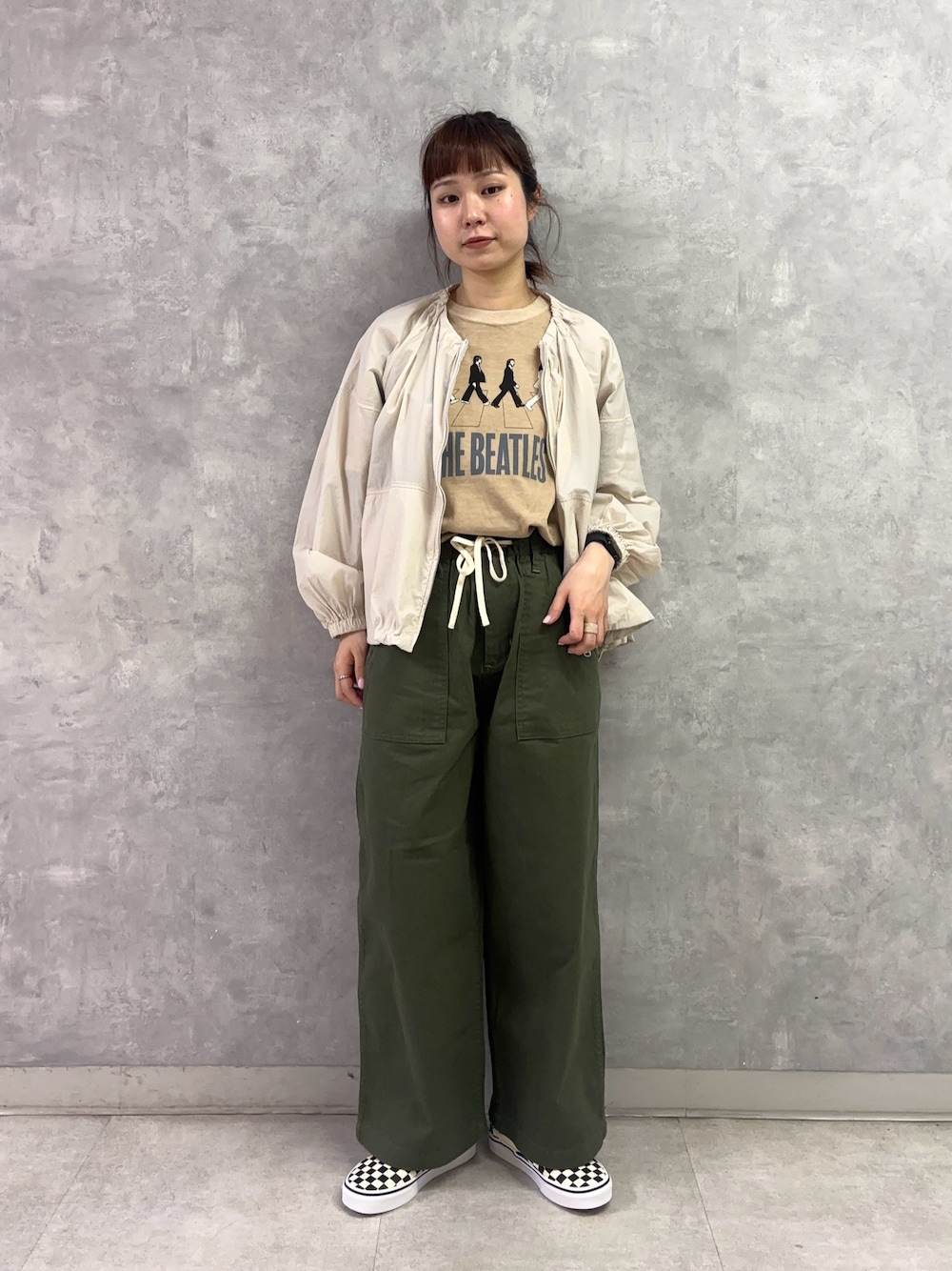 EKALのナイロンタッサー上下とドットエアーのジャケットを合わせて、ラフすぎずキレイめ過ぎずなスタイリング組みました。