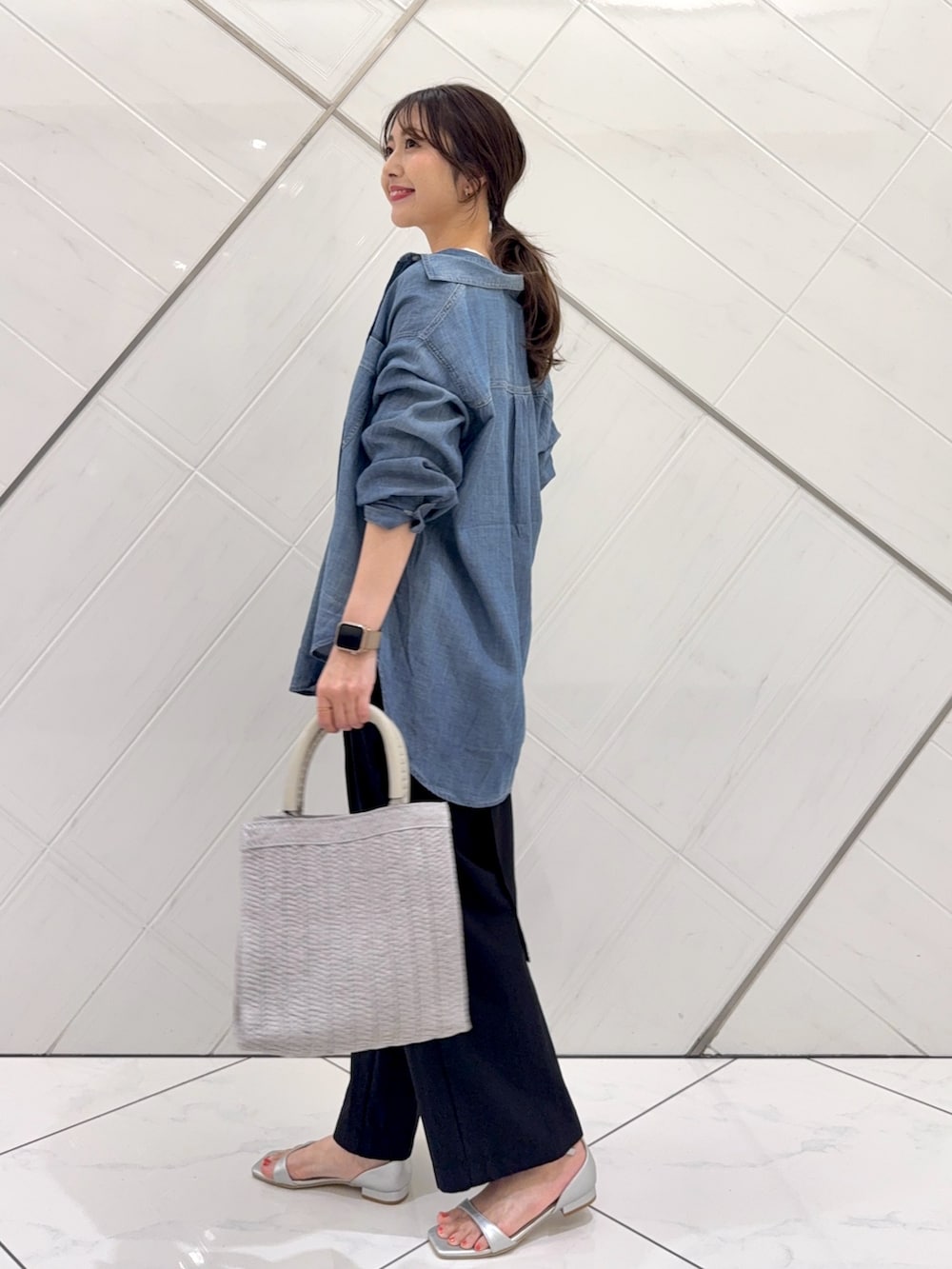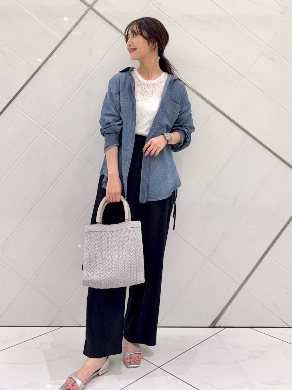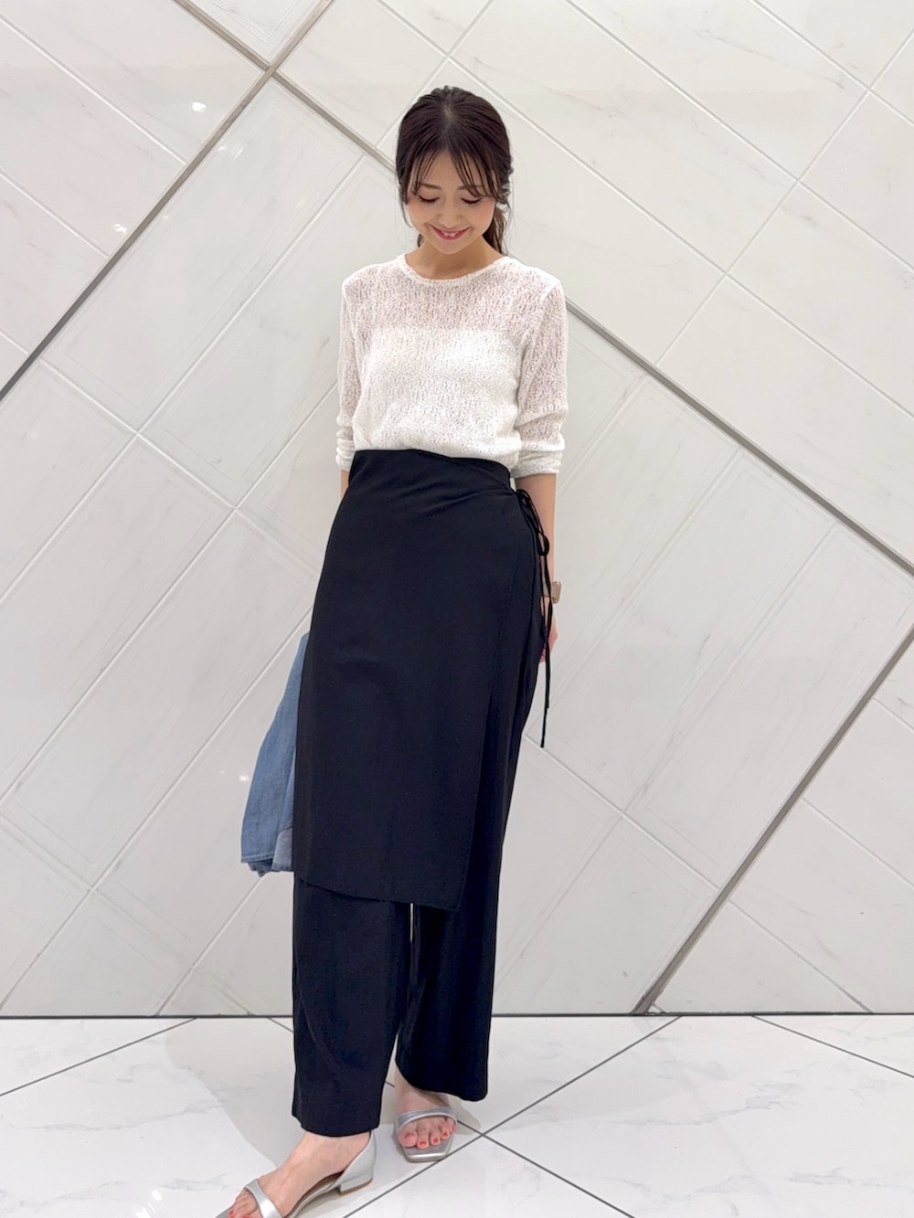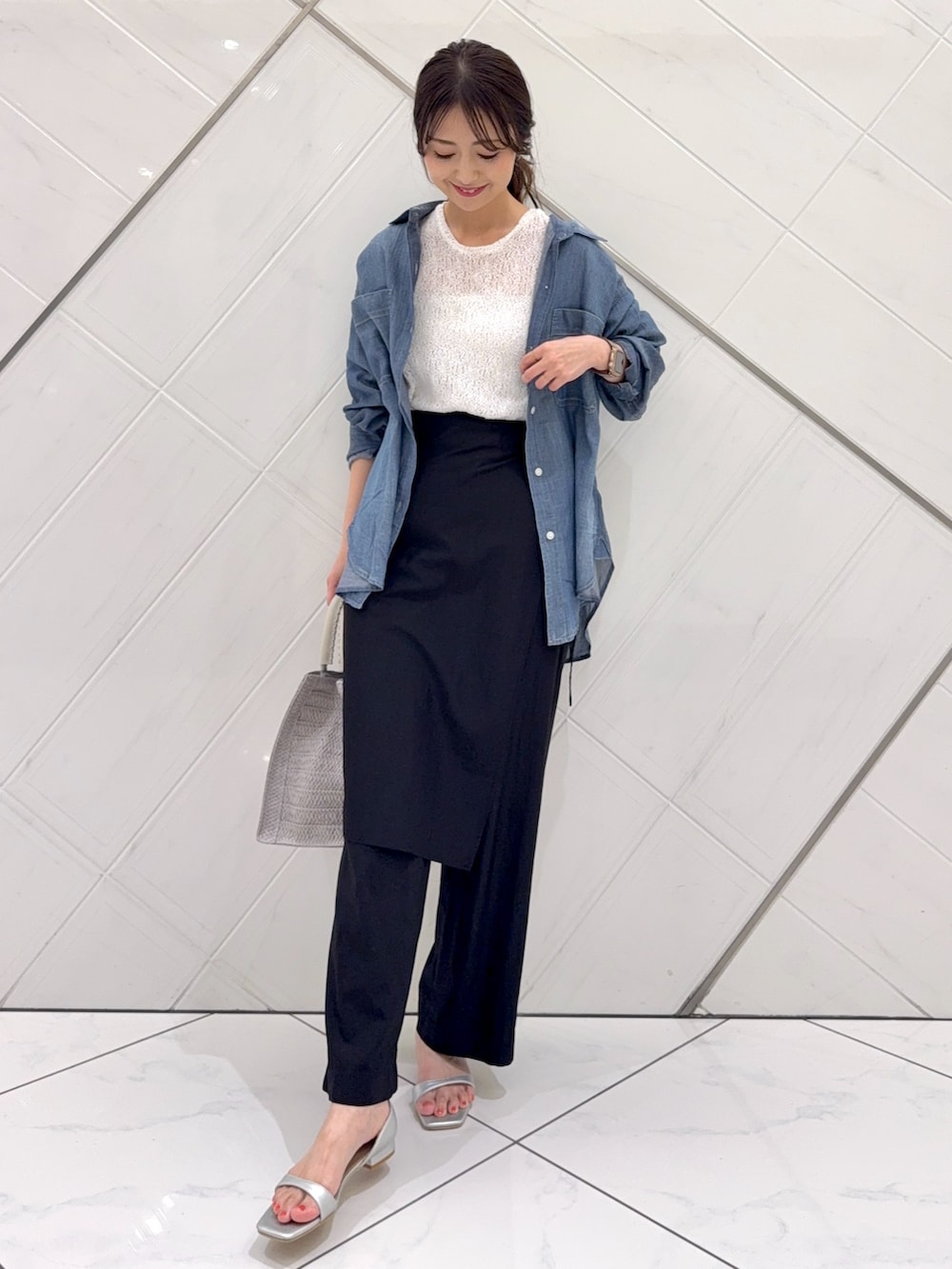 シャツはシアー感のある素材なので暑くなるシーズンにも着やすく、着回ししやすいので私もプライベートでも重宝しています。
