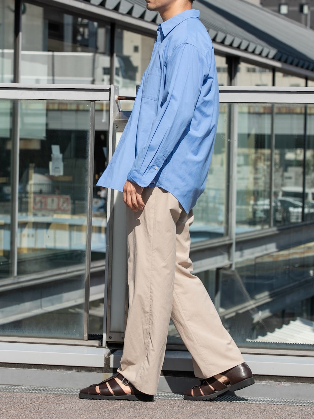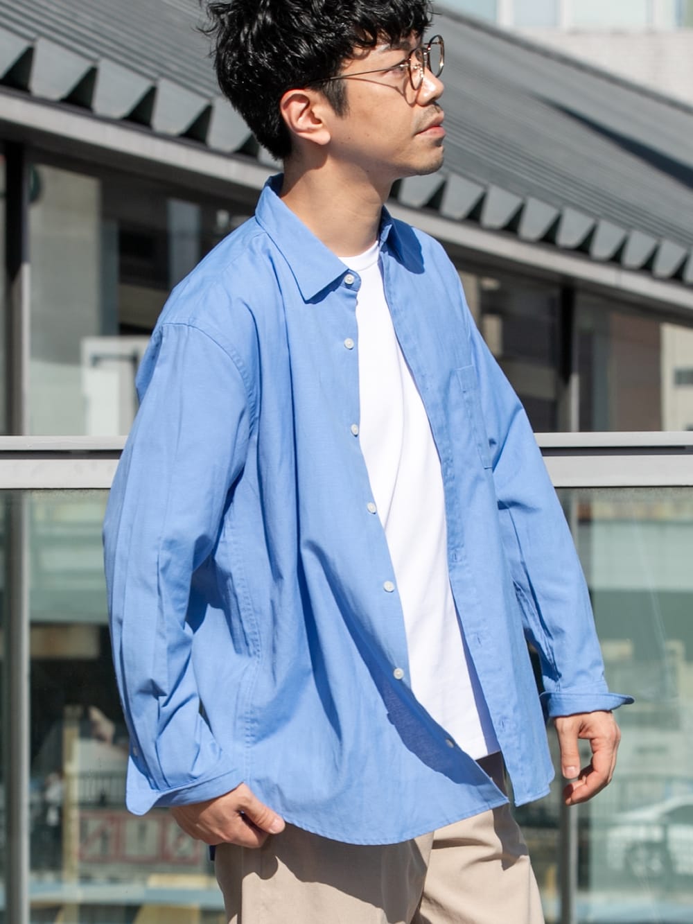 シャツはLサイズで腕まわり、身幅がゆったりしたシルエットです。