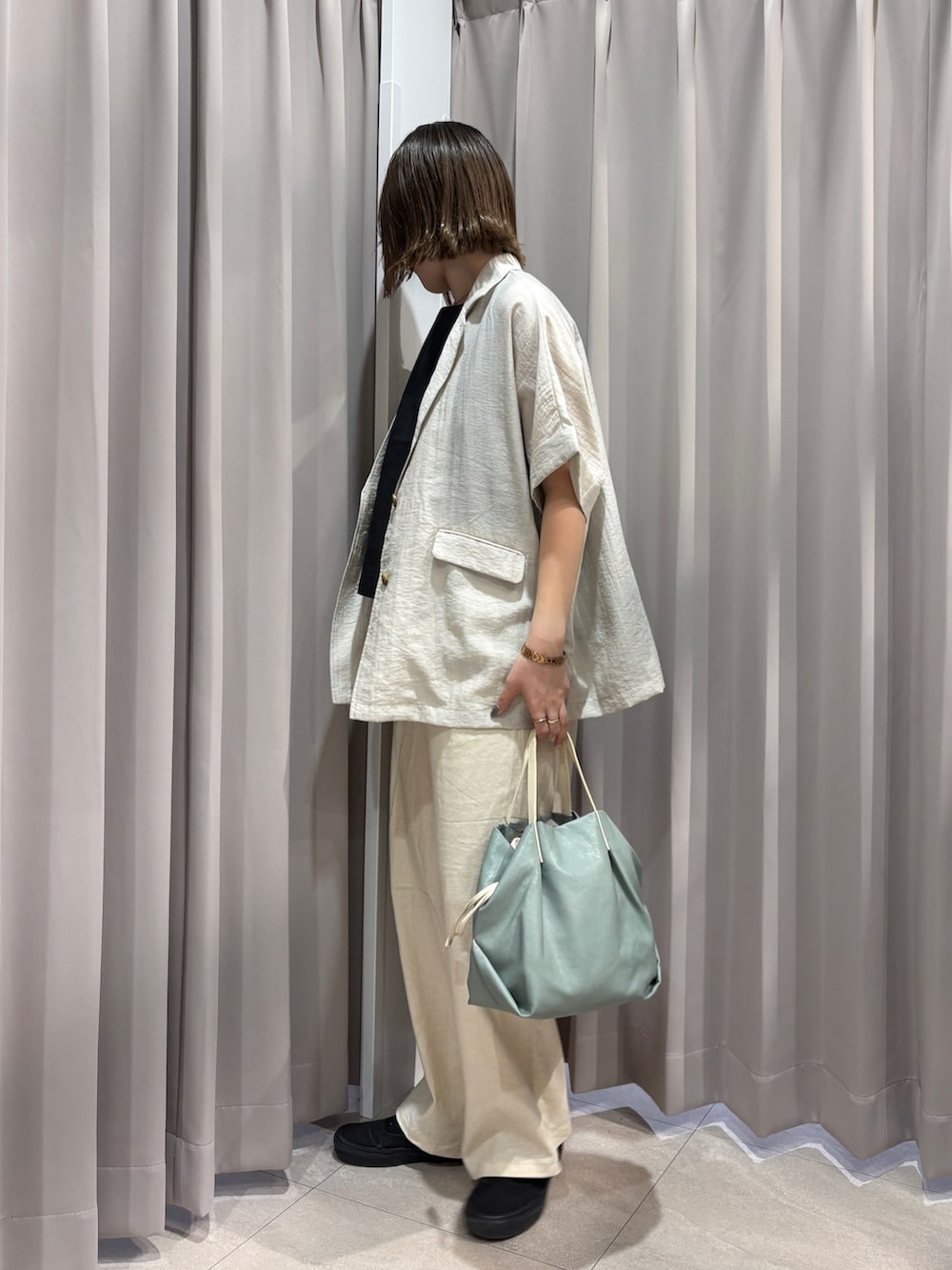 オールホワイトのコーディネートにしてみました!ジャケットはゆったりしているサイズ感なのでインナーを選ばず着れます!