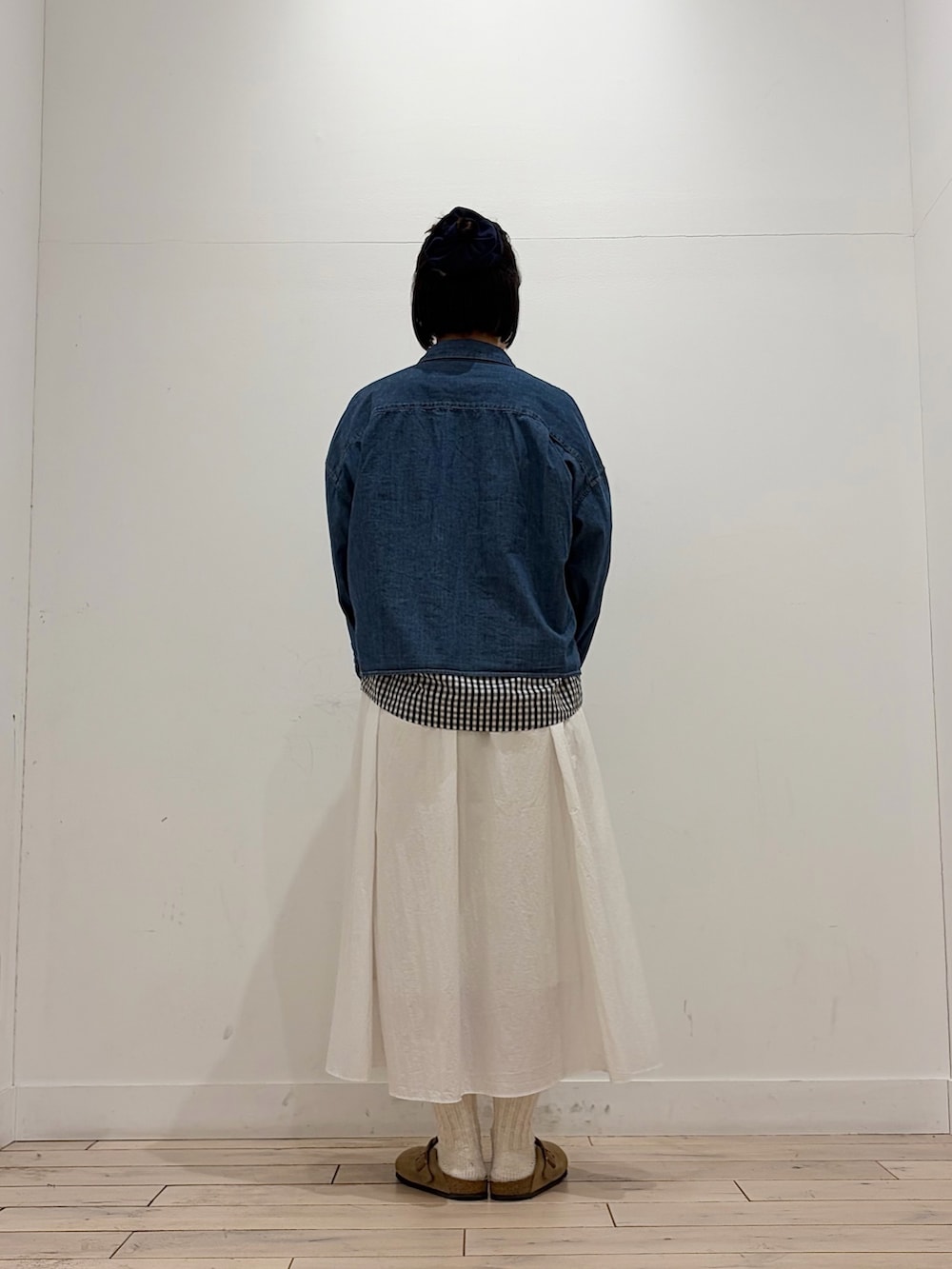 デニムシャツはショート丈なので使い回しがしやすく、ロングスカートとの相性も抜群です◎今回は羽織りとして合わせてみました🌸