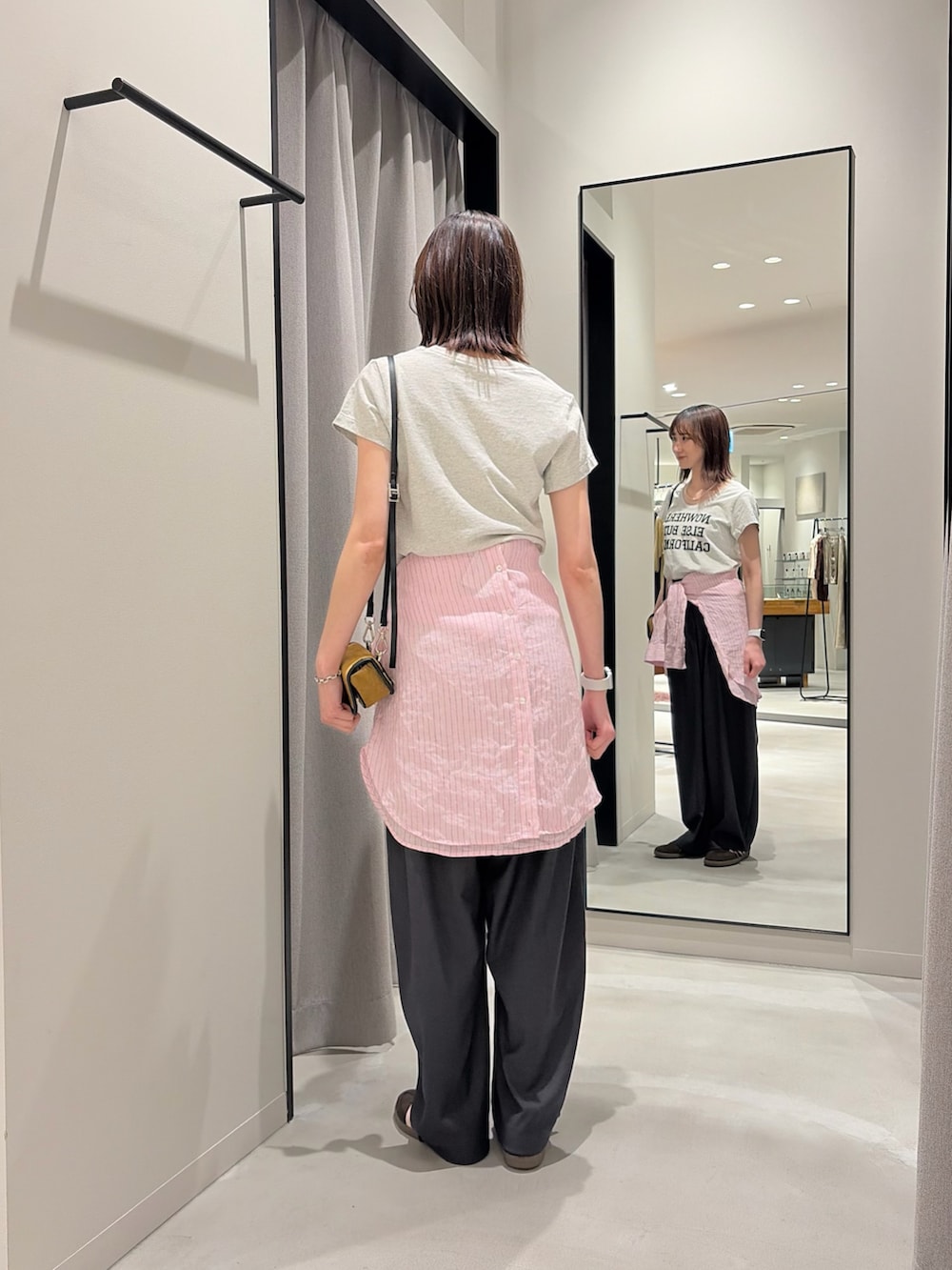 Tシャツは鎖骨が綺麗に見える+細身のシルエットなのでカジュアルになりやすいグレーでも