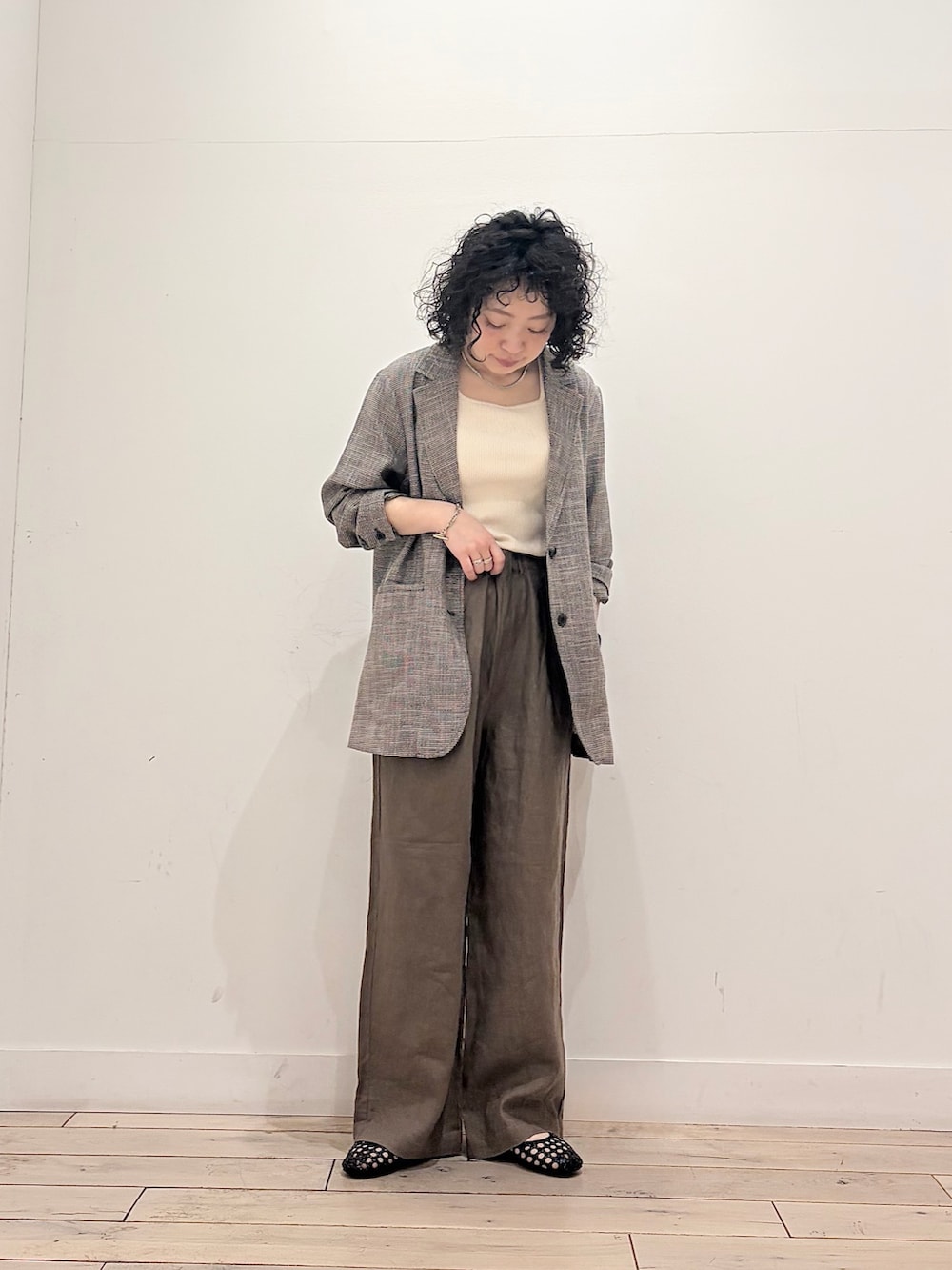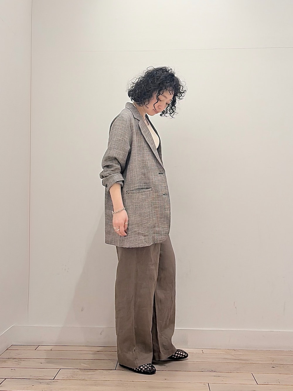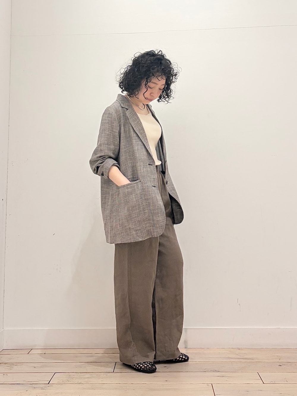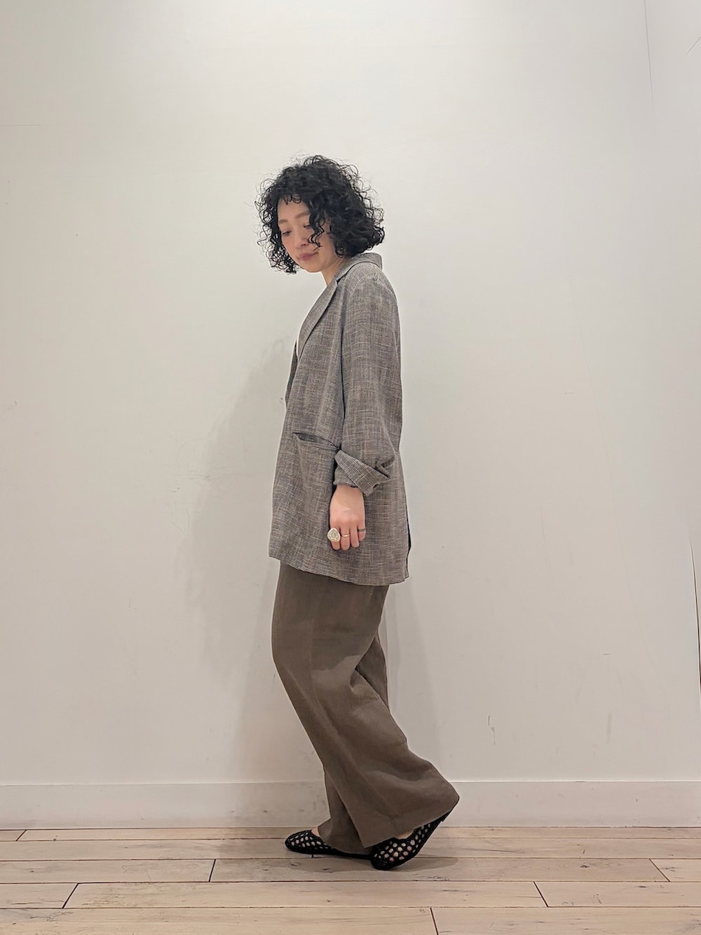 リネン混なのでお仕事用はもちろん、普段使いでも堅苦しさなく軽ーく羽織れてスタイリッシュなコーデの完成です♪
