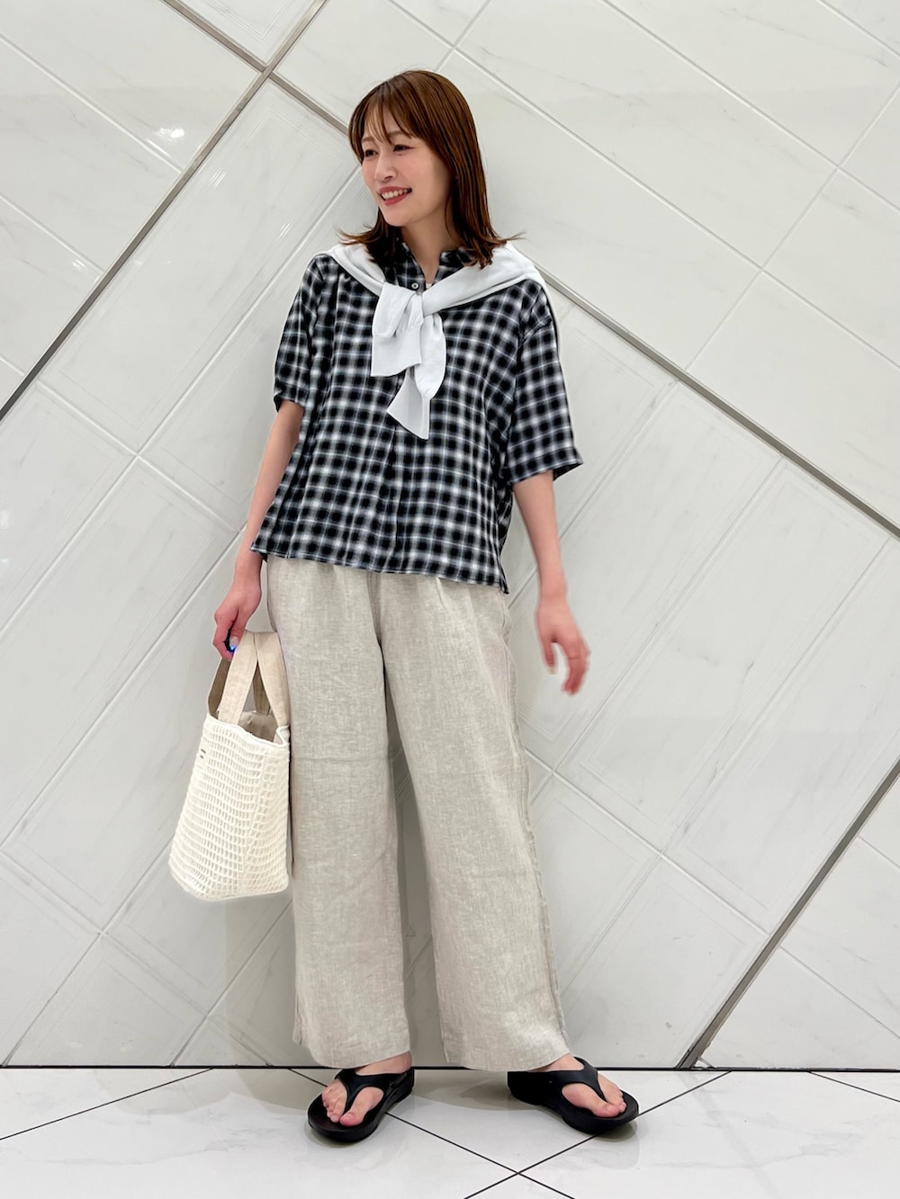 肌触り抜群のブラウスはチェック柄が目を惹きます。