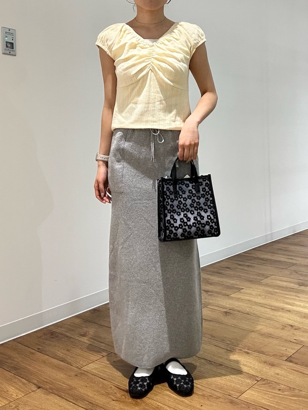 スウェットスカートもスリットなどはありませんが、生地の伸びがよくて履き心地抜群です!