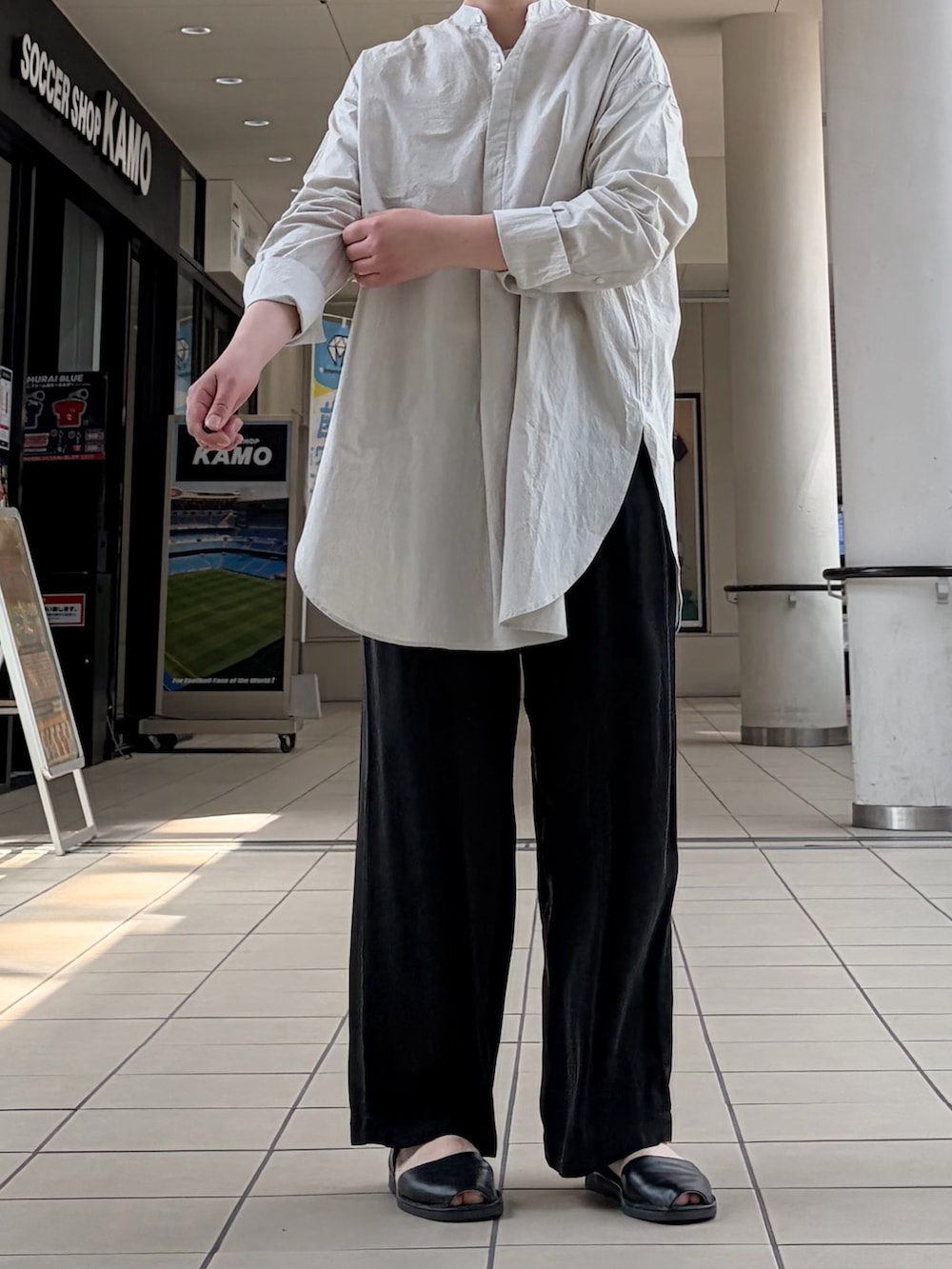 今回はチュニックシャツと合わせてカジュアルダウンした装いです。ぜひお試しくださいませ🌷