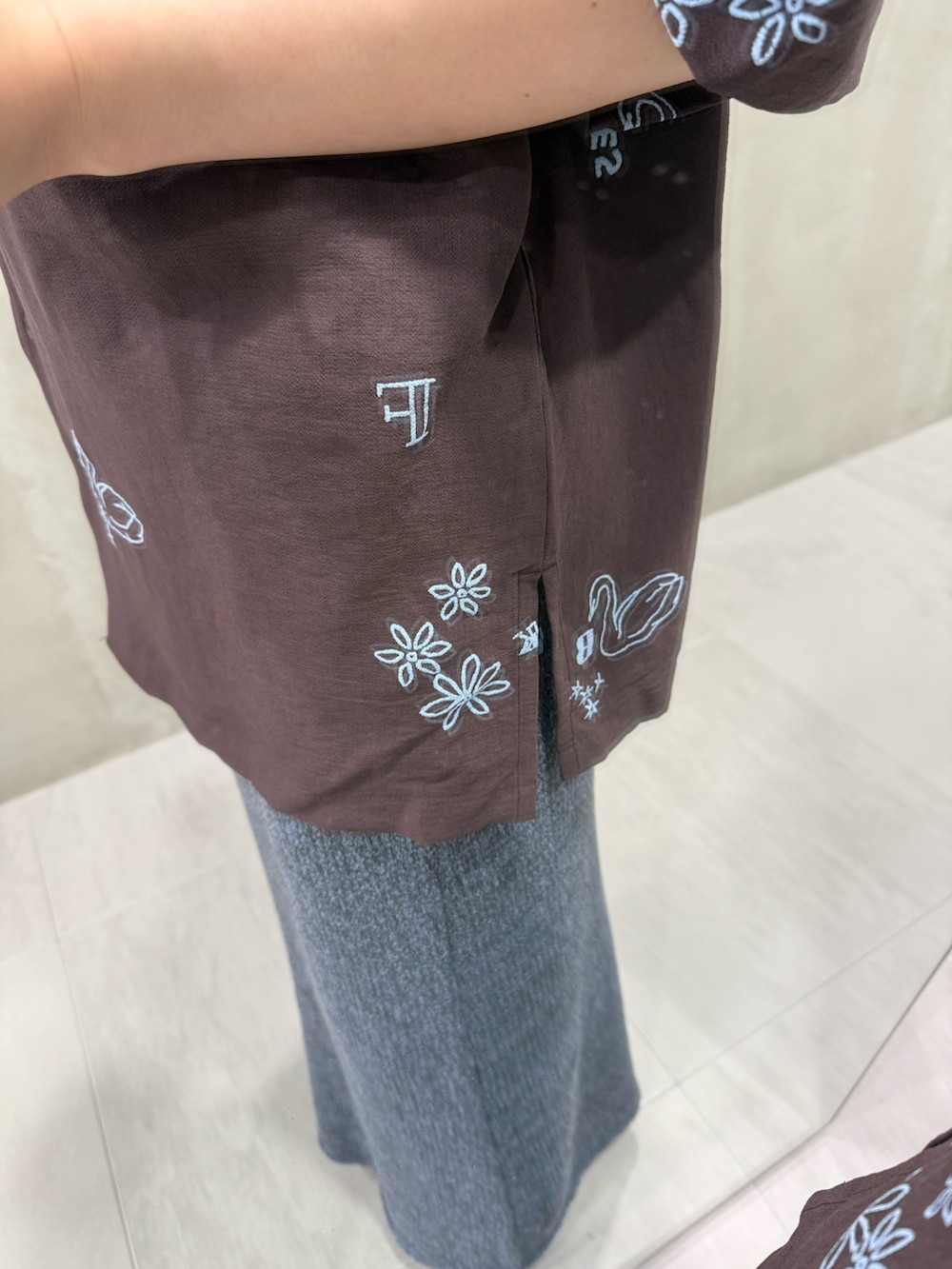 刺繍の色に合わせてブルーのスカートにしました!