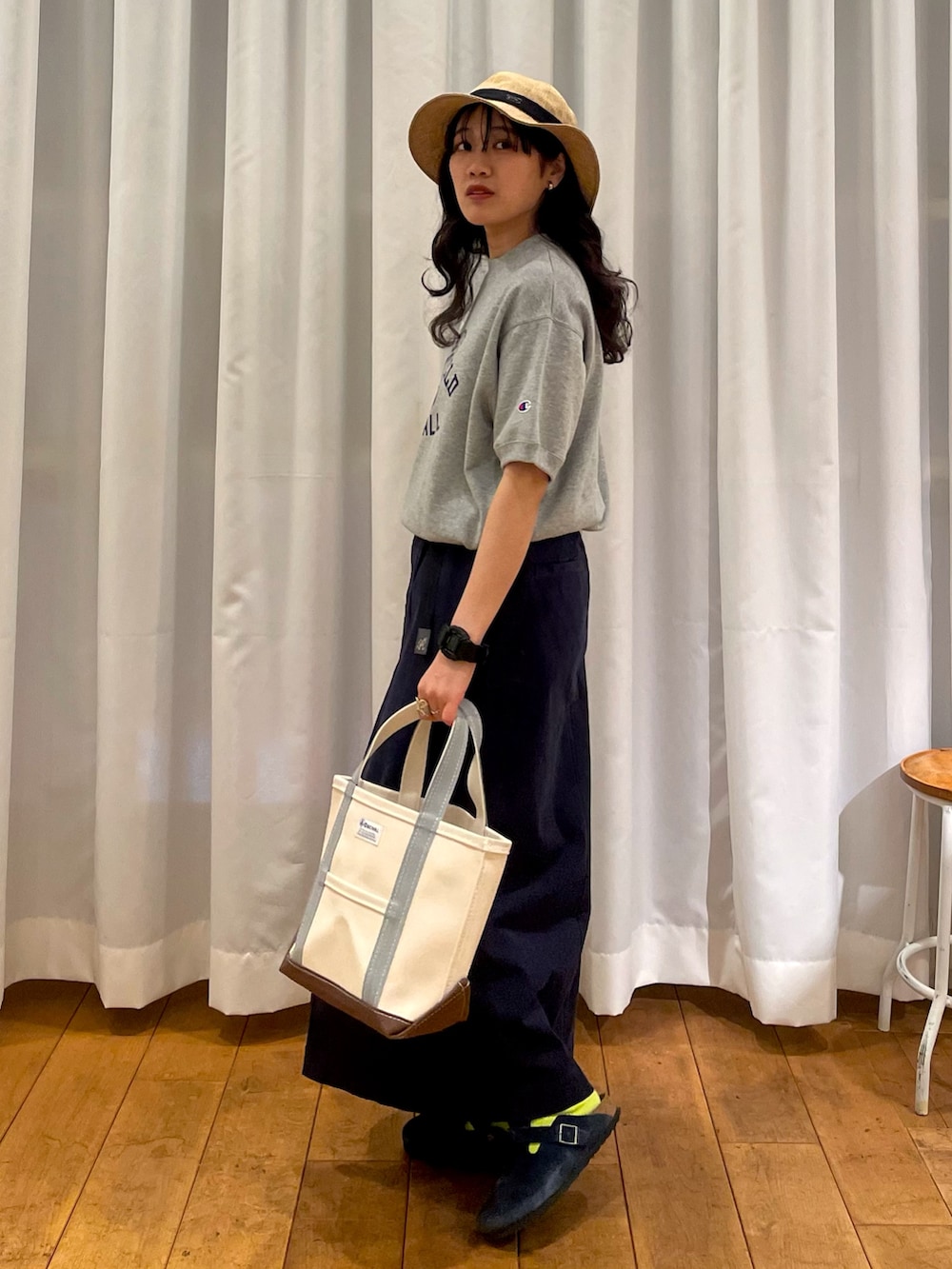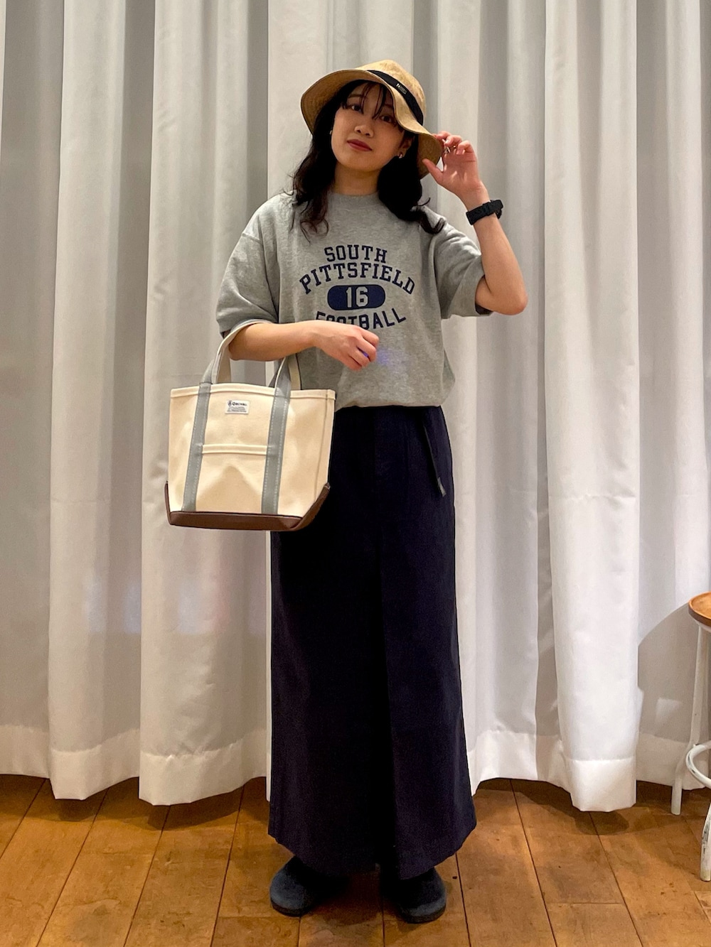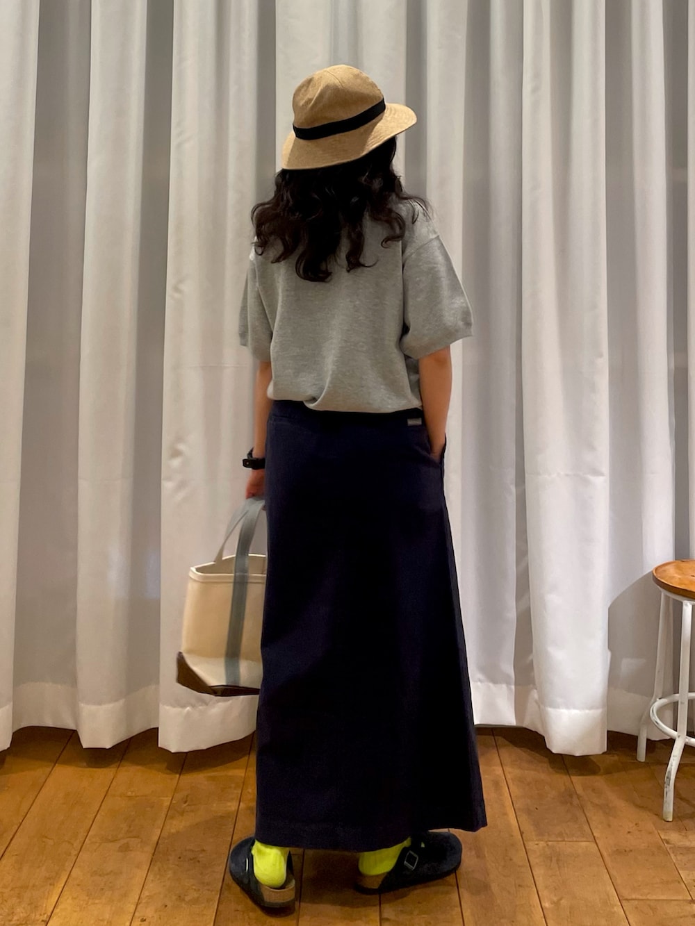 別注GRAMICCIのスカートで、ネイビーのカラーを拾って合わせました。
