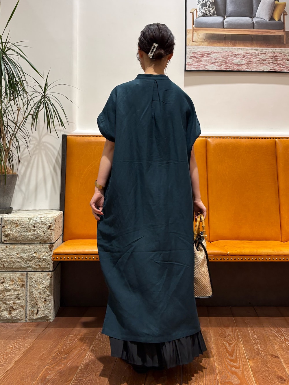 裾にスリットが入っているので足捌きも良く、ワンピースとしてはもちろん、デニムなどのパンツ合わせもおすすめです!◎