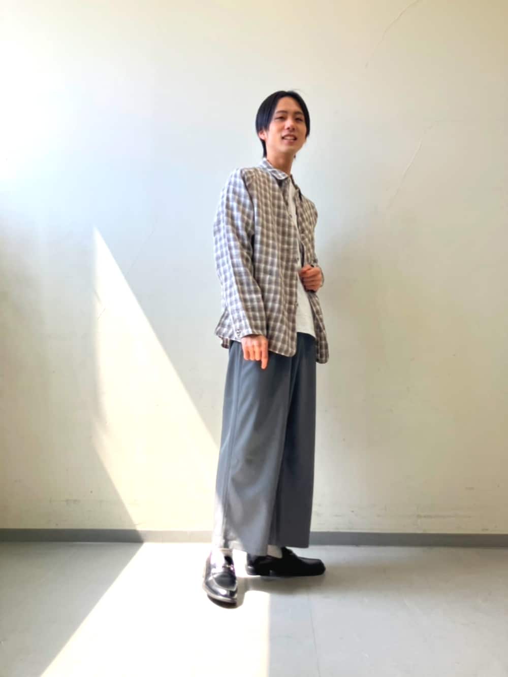 シャツのボタンを開けることによって、見え方というのは大きく変化します!今回は、大人っぽい雰囲気を意識したため、上のボタンと下のボタンを開けました!キャップを加えることで良いアクセントになります^_^