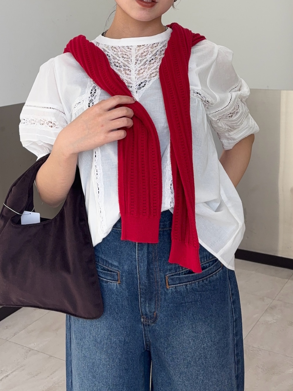 新作のMIXレースディディールブラウスを使ってキレイめカジュアルコーデを組みました🌸