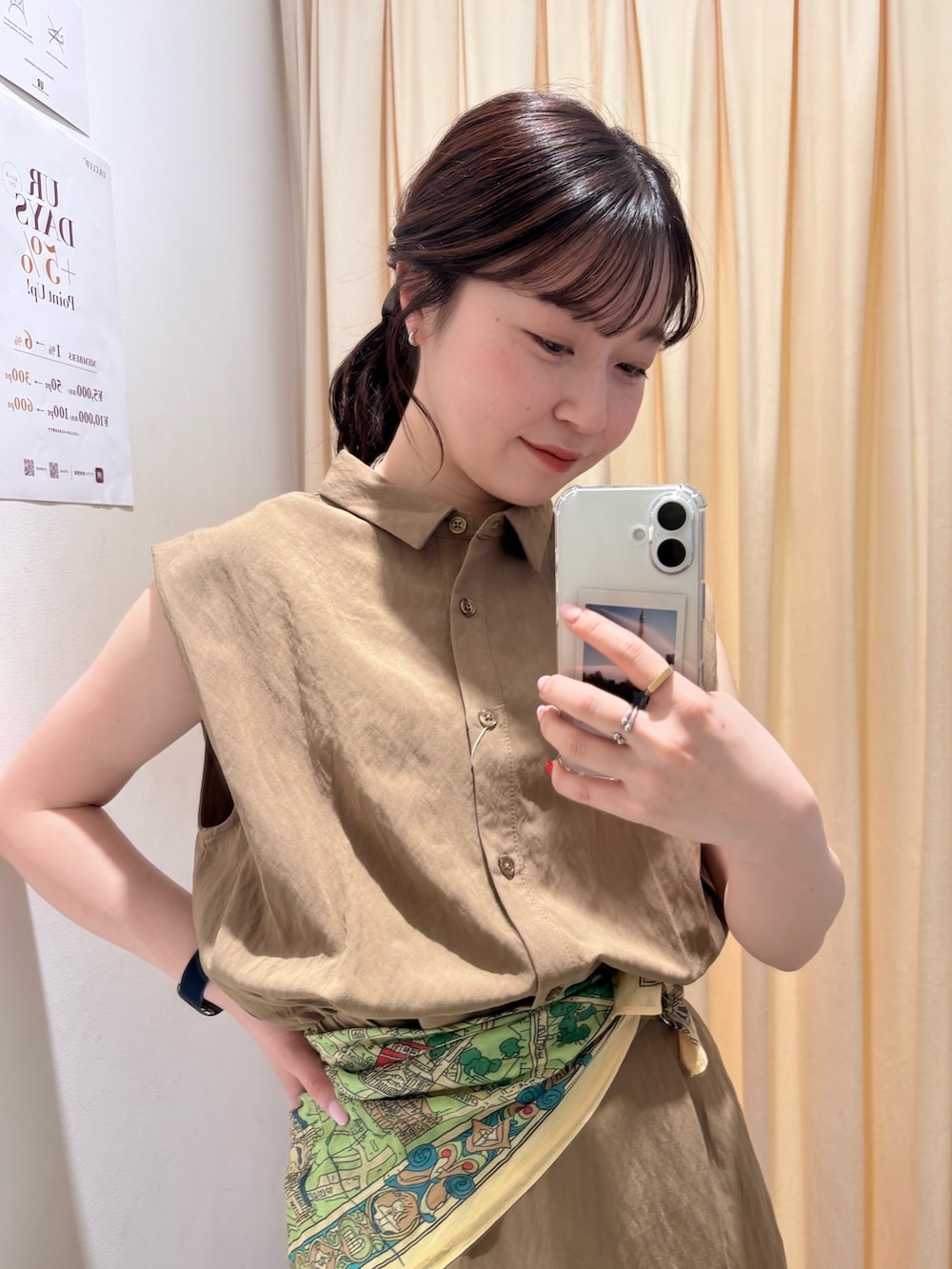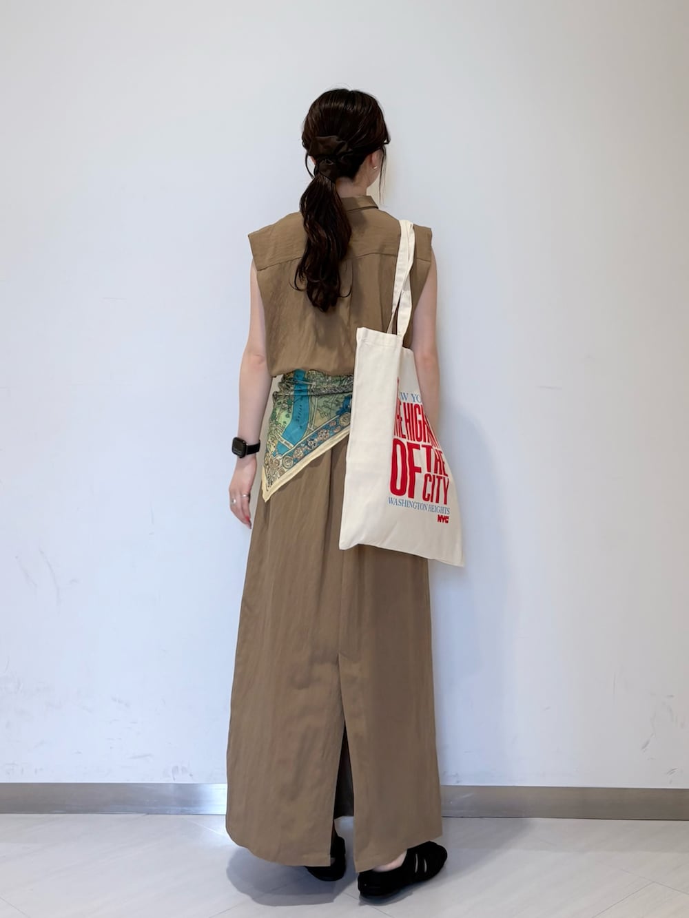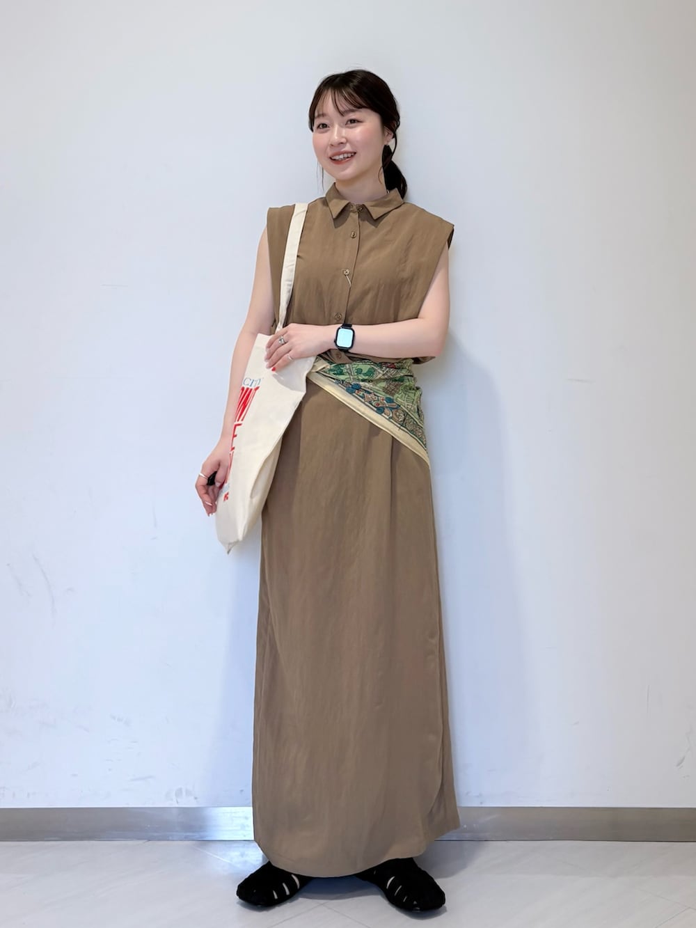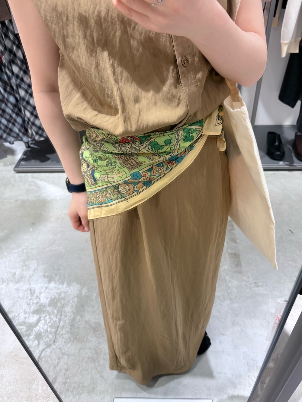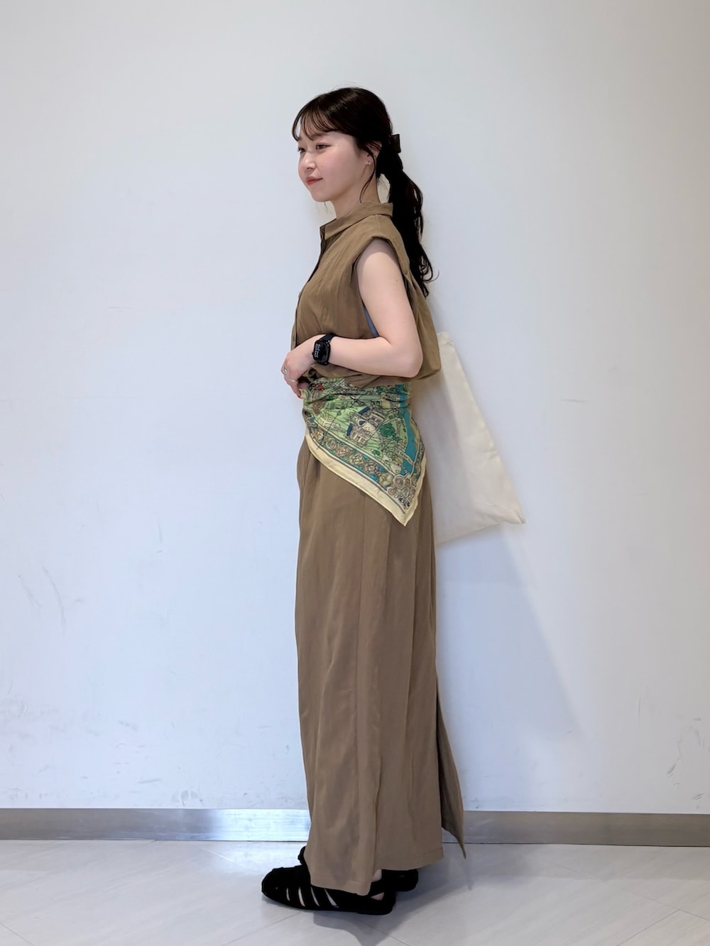 ウエストにスカーフで少し差し色足してみました☺️