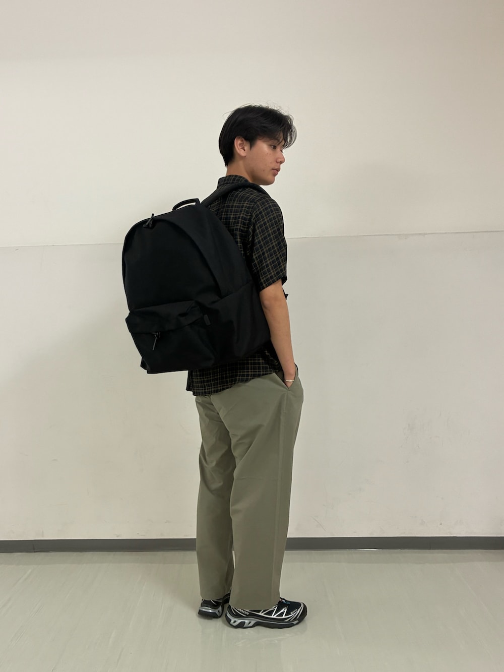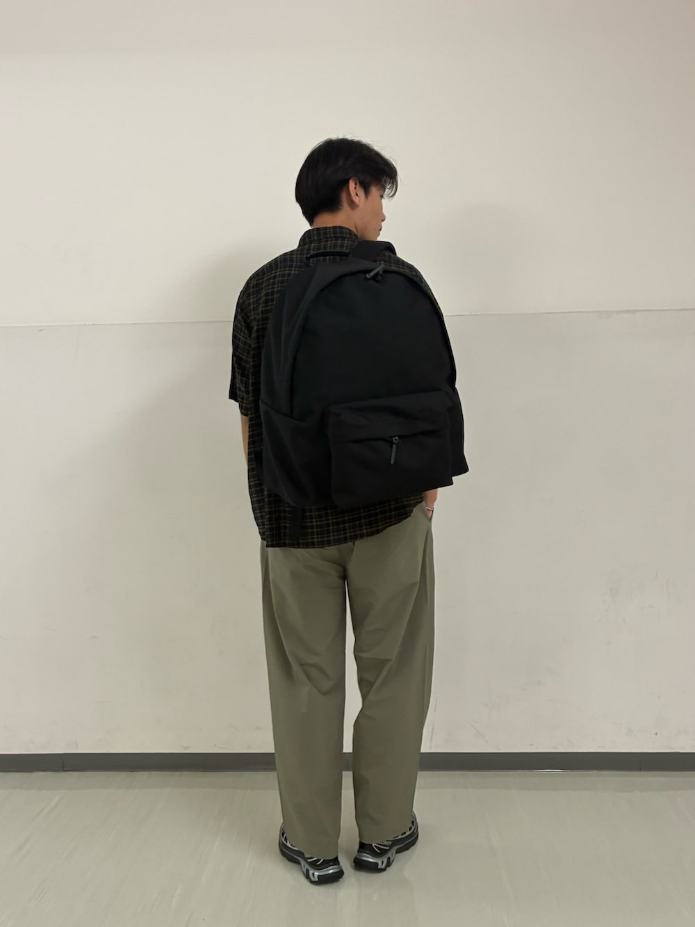 小物はSTANDARD SUPPLYのタフな別注デイパックでアクティブな雰囲気を意識してみました。