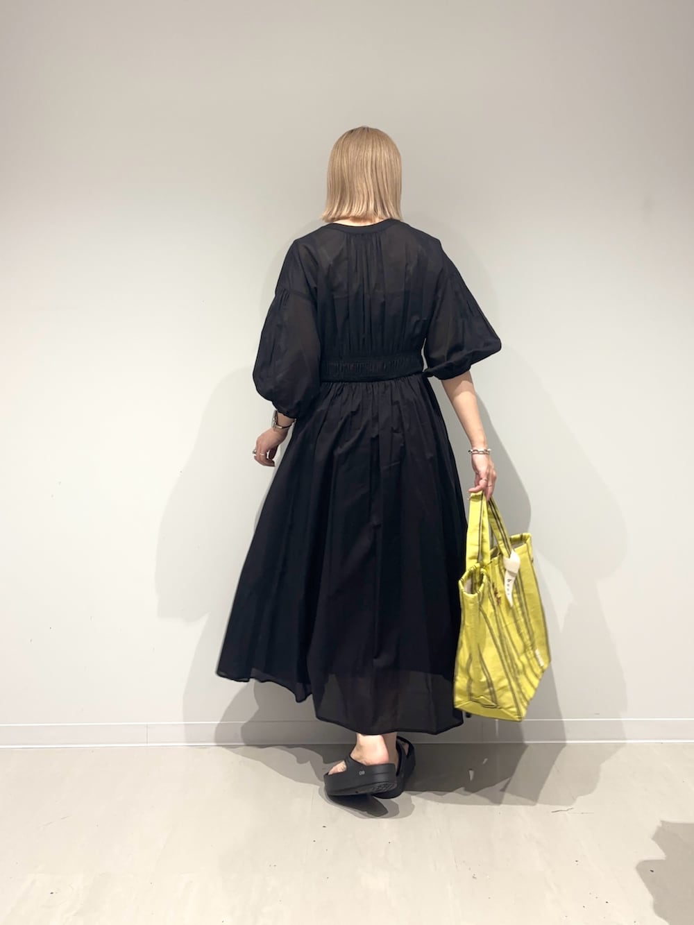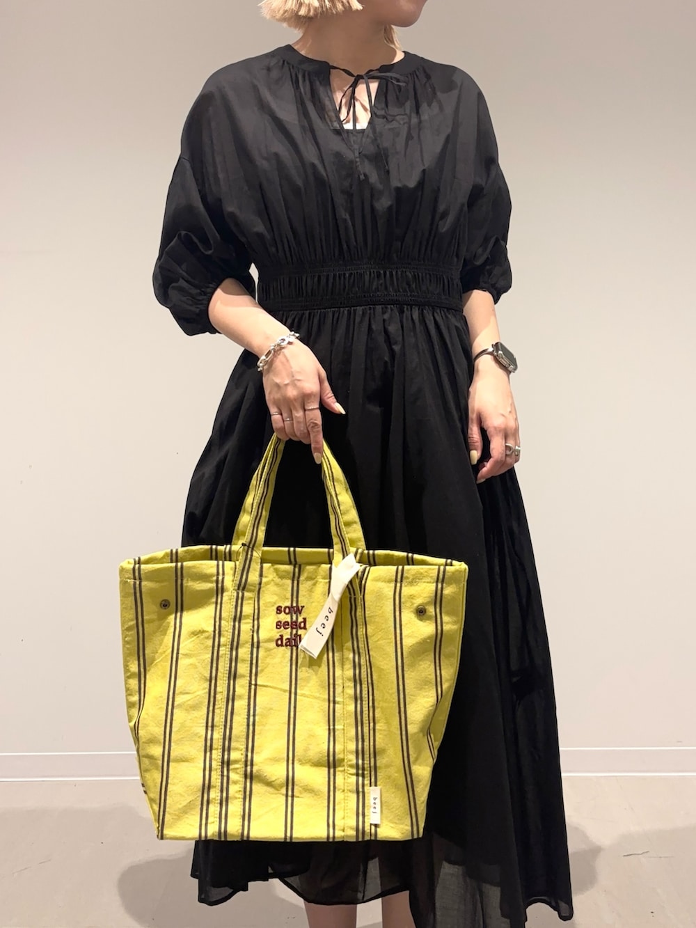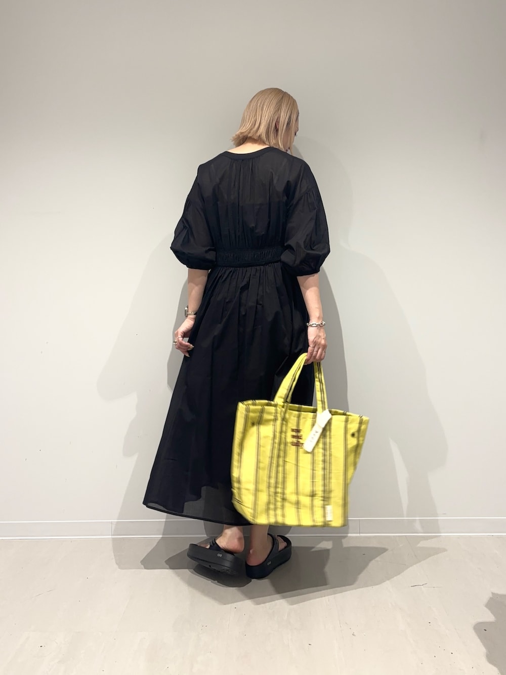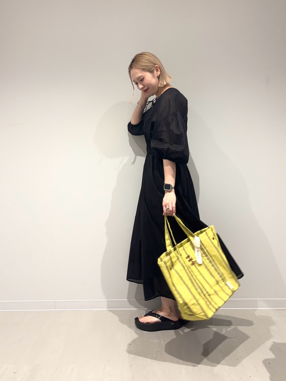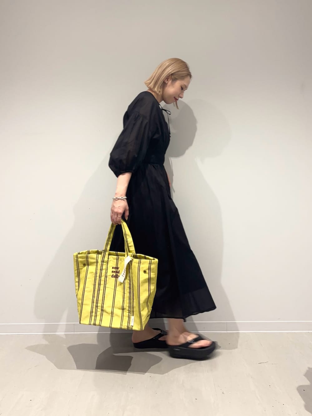 バッグは差し色にイエローを。大きめの存在感があるバッグを合わせてみました☺︎