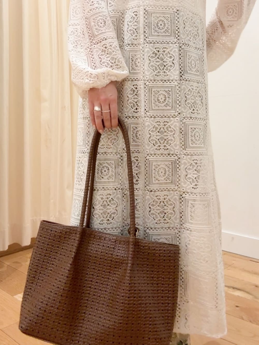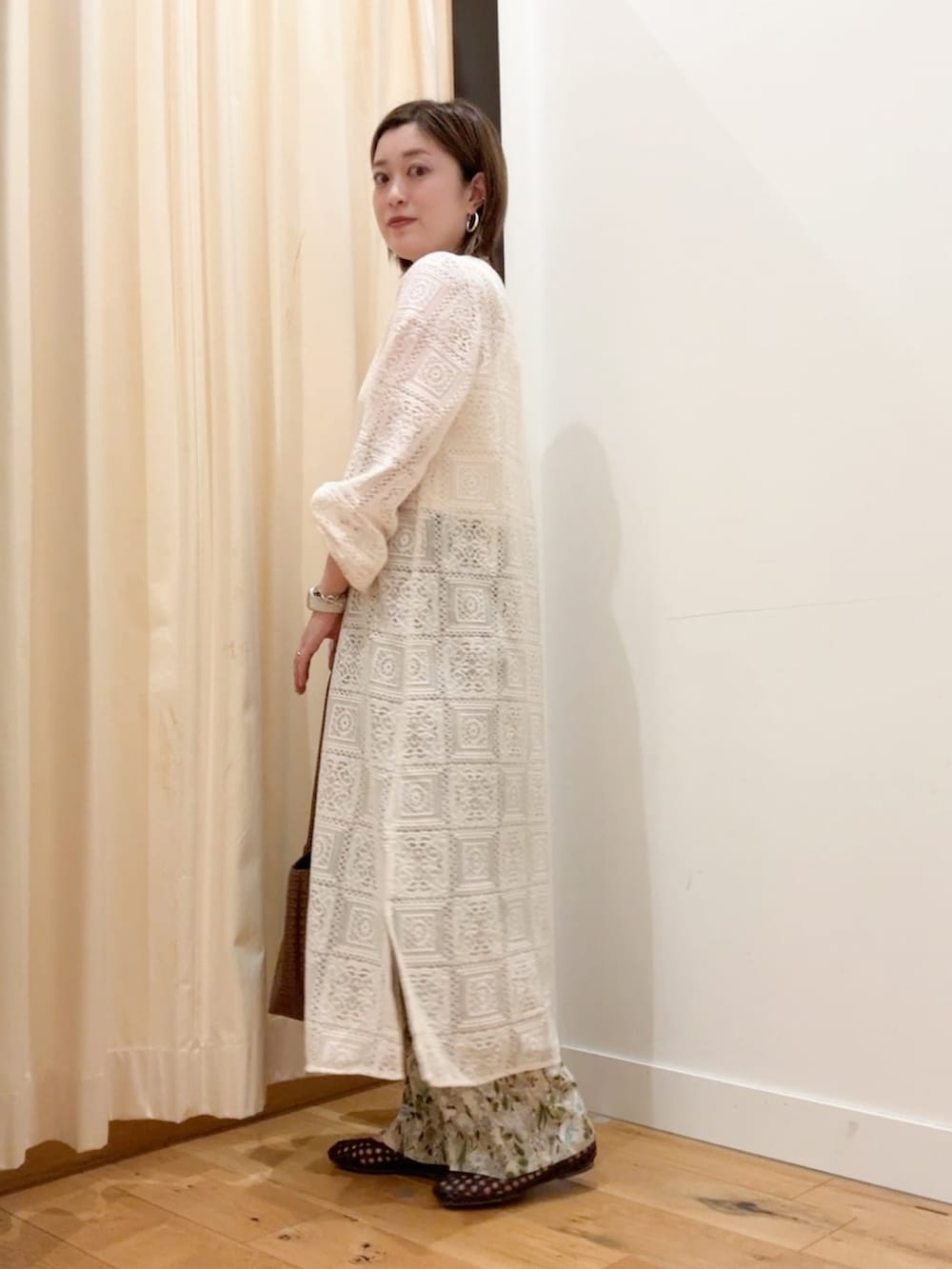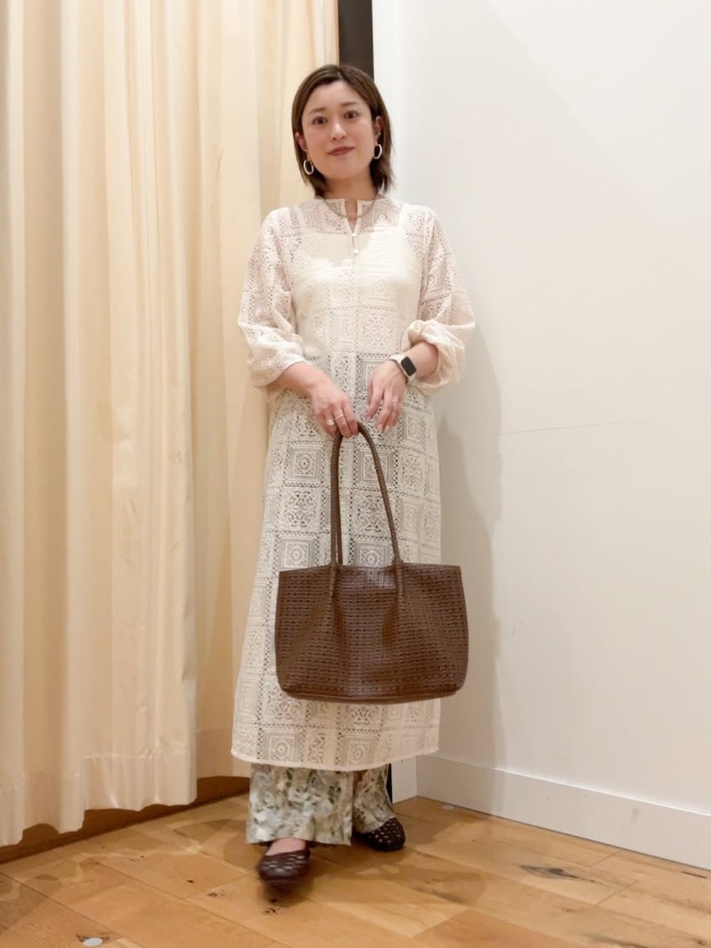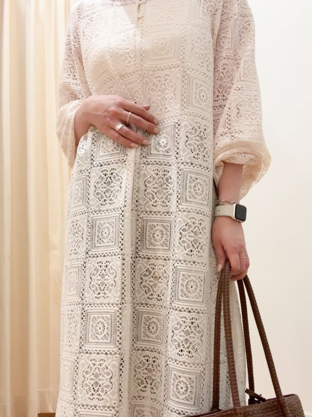 レイヤードスタイルにおすすめなレース生地のワンピース。