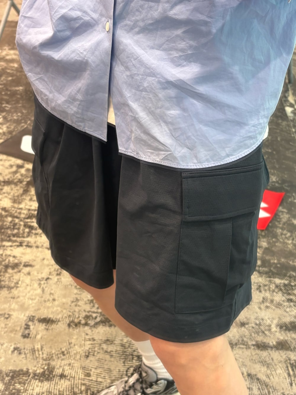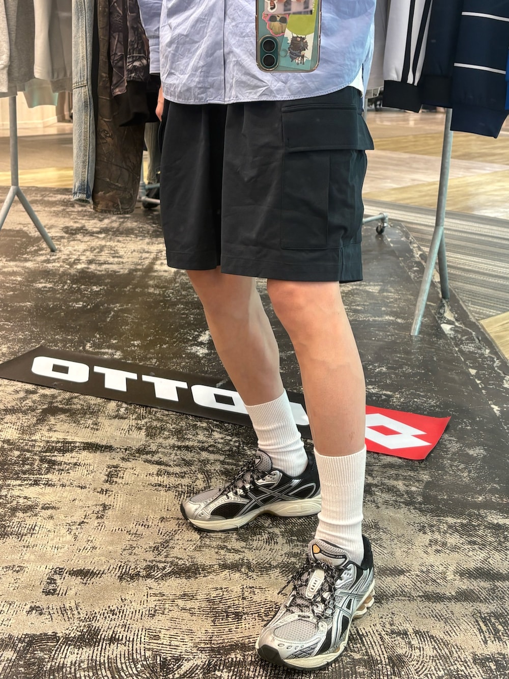 wide dadのカーゴショーツはキレイメアイテムとも相性抜群のシンプルさ