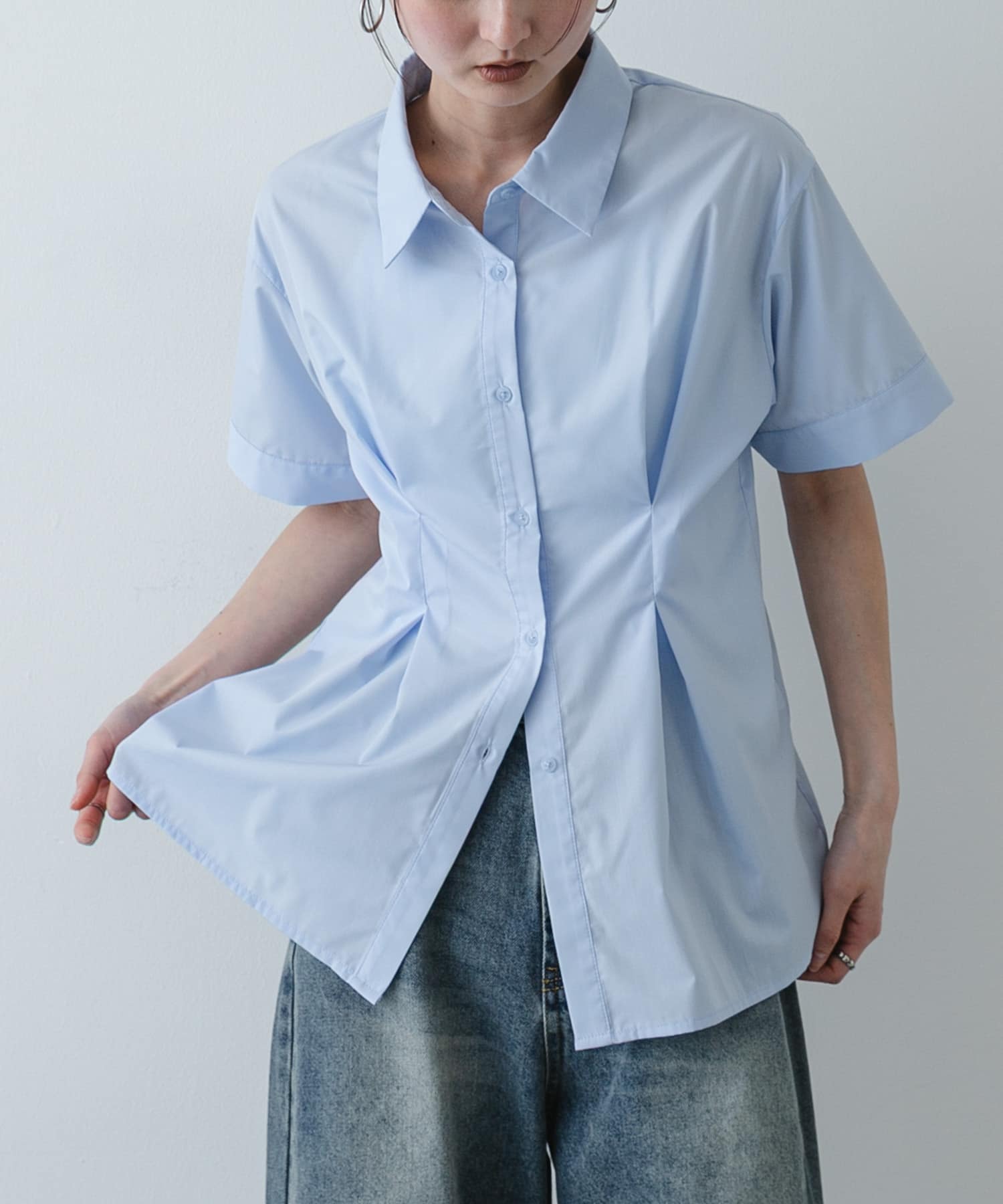 SENSE OF PLACE『イージーケア』ウエストタックハーフスリーブシャツ- 着用カラー: