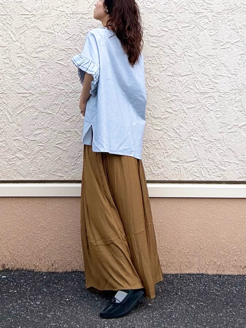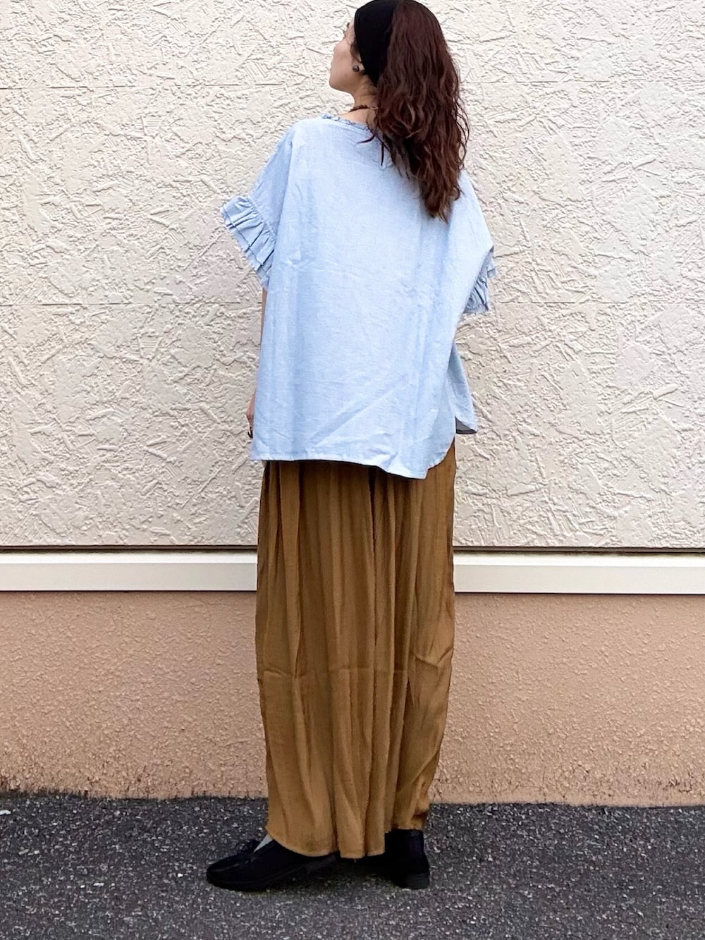 フリルが素敵なブラウスに、着心地抜群のガウチョパンツは間違いなしです◎