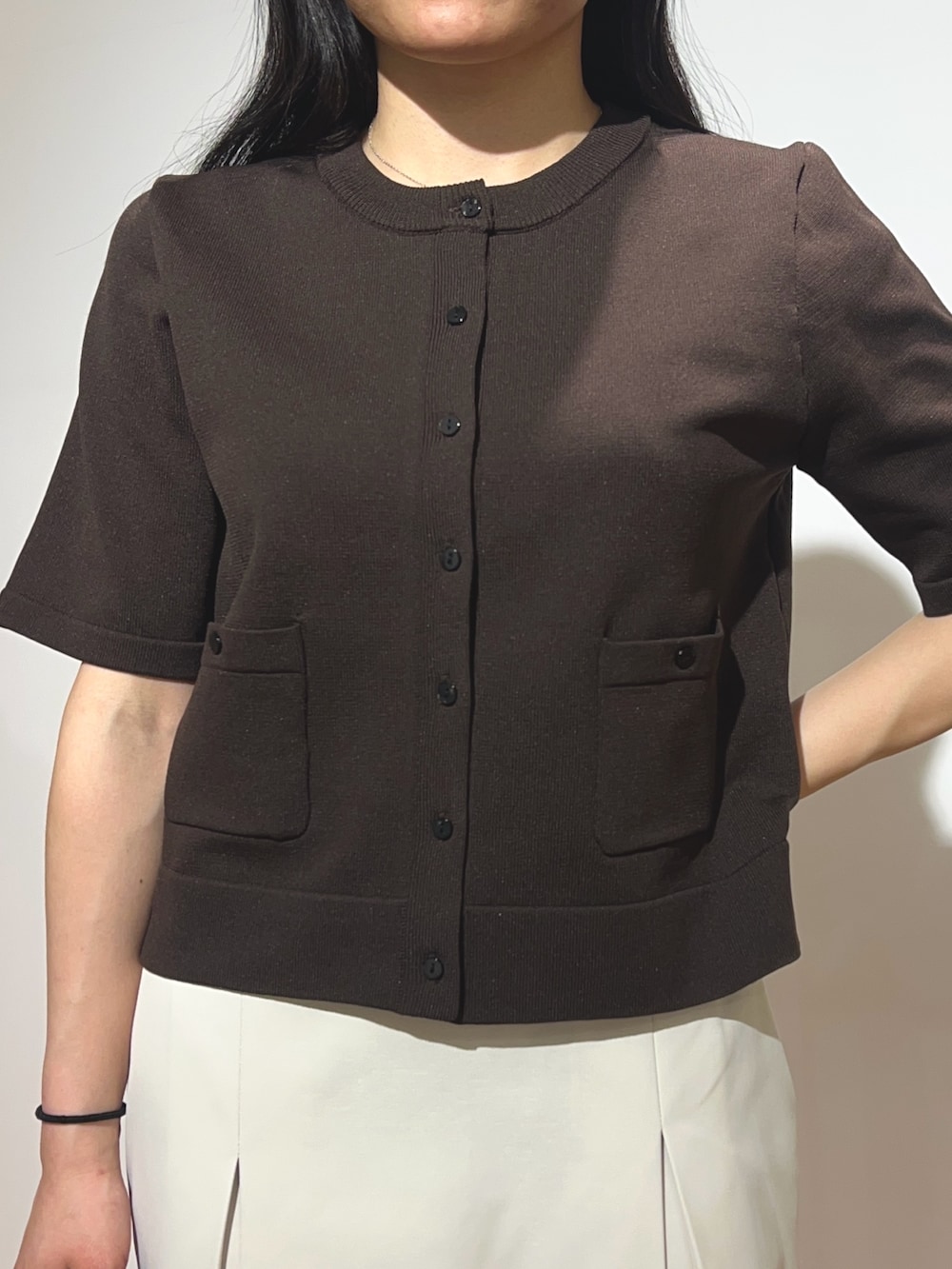 『洗濯可』ポケットツキハーフスリーブカーディガン