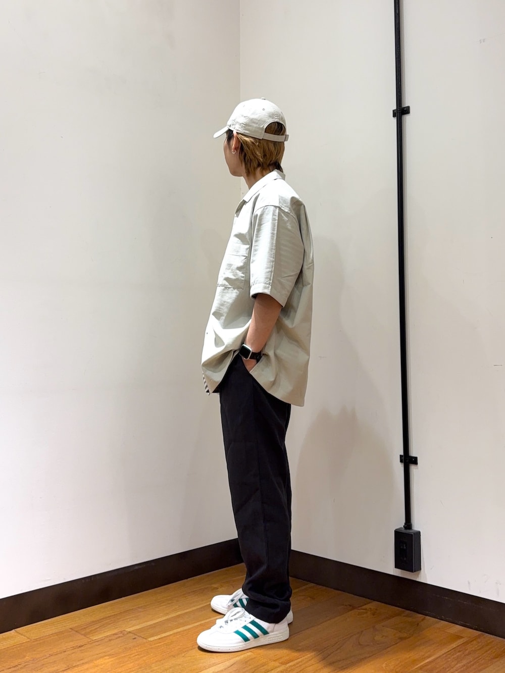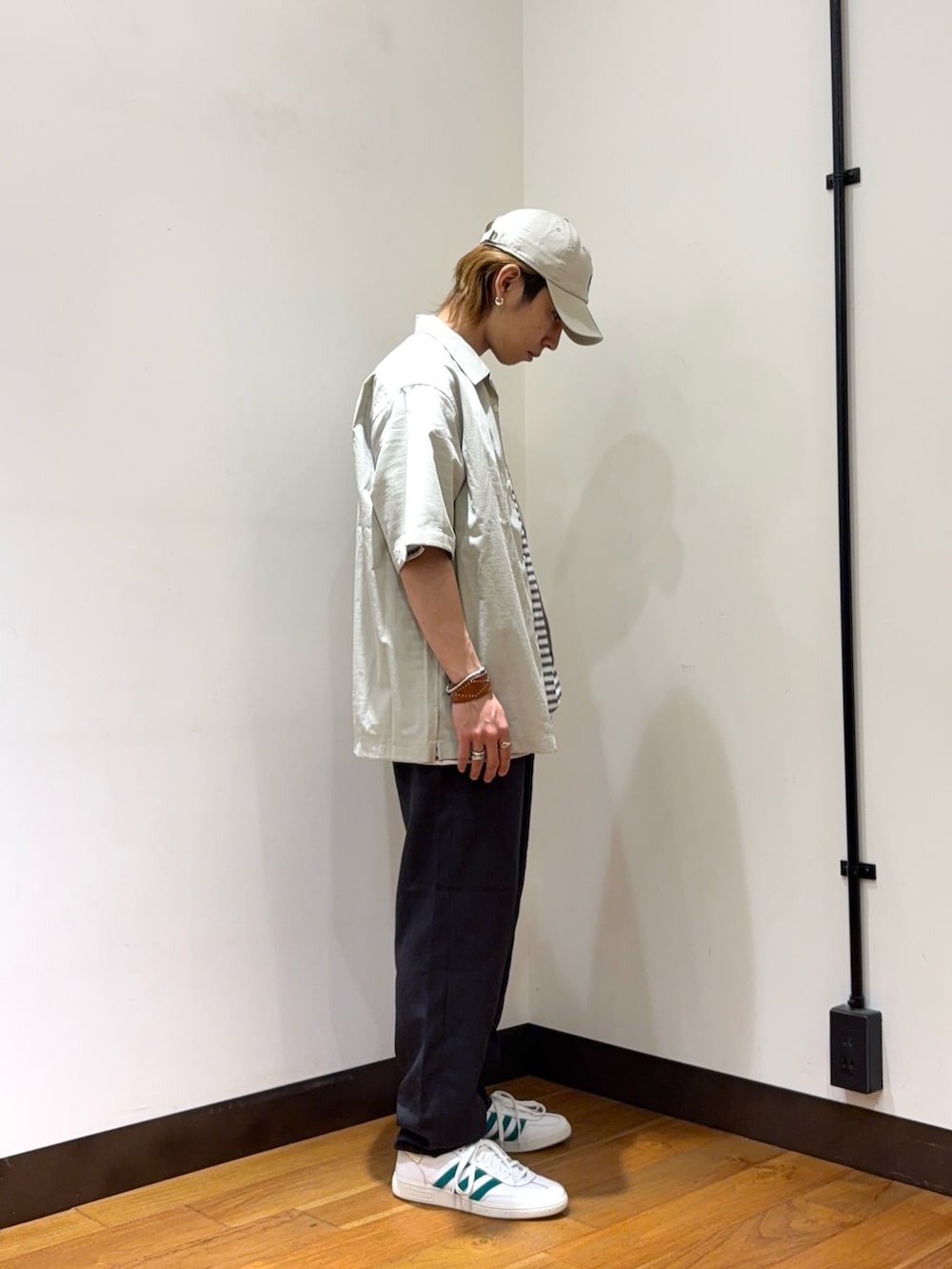 シャツはクイックドライの素材感で軽くてサラッと羽織れる万能シャツです。インナーで遊んだり1枚でシンプルに着こなすのもアリです◎