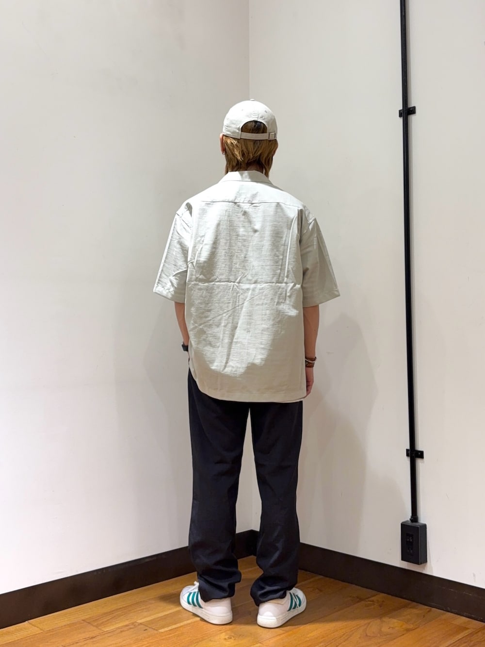 パンツはリネンライクの素材感なのでとても涼しく履き心地も最高にいい1本です。毎日は来たくなるような楽さなので持っていて間違いはないと思います👍