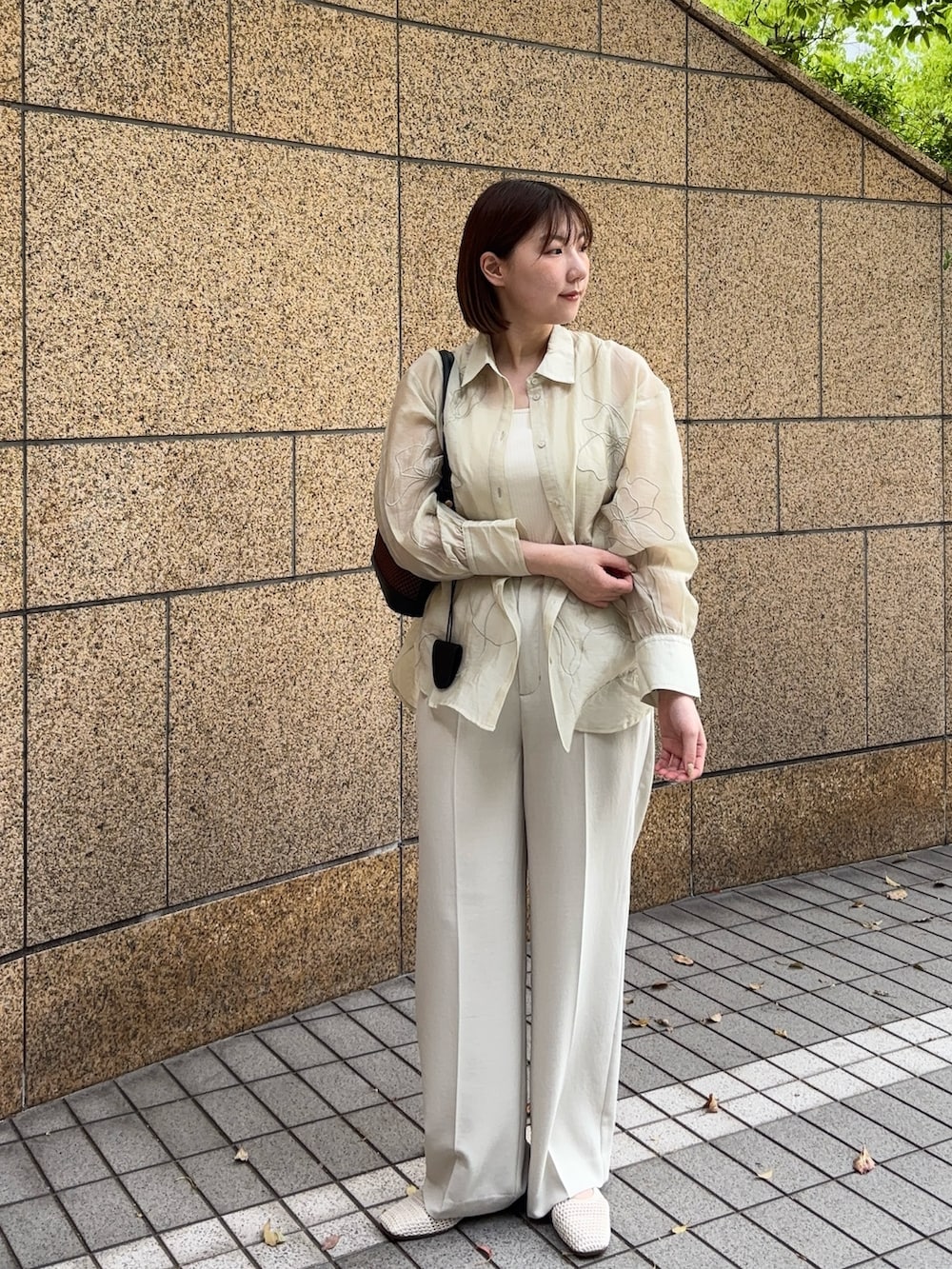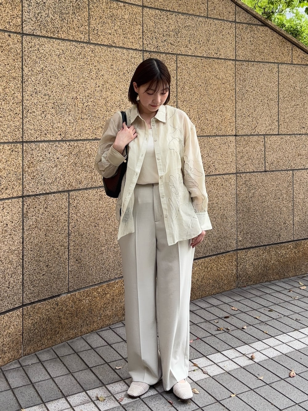 シャツとパンツの色味を合わせて統一感のあるコーデに🫶🏻