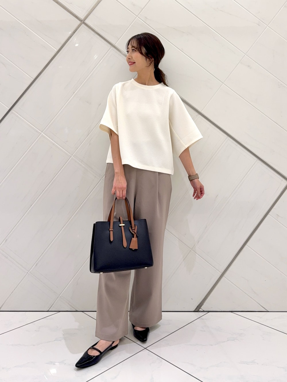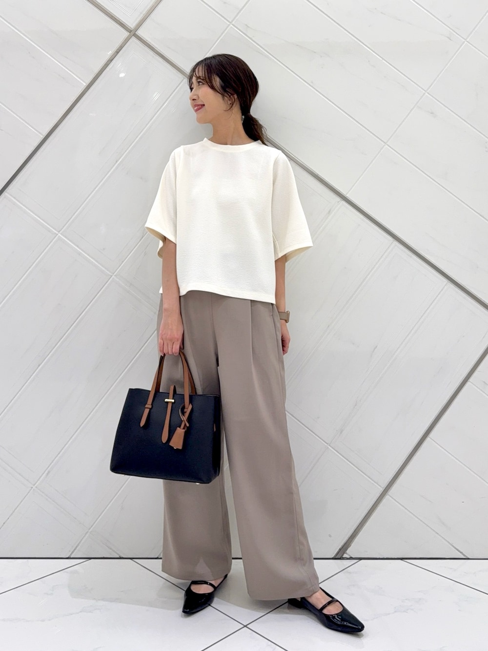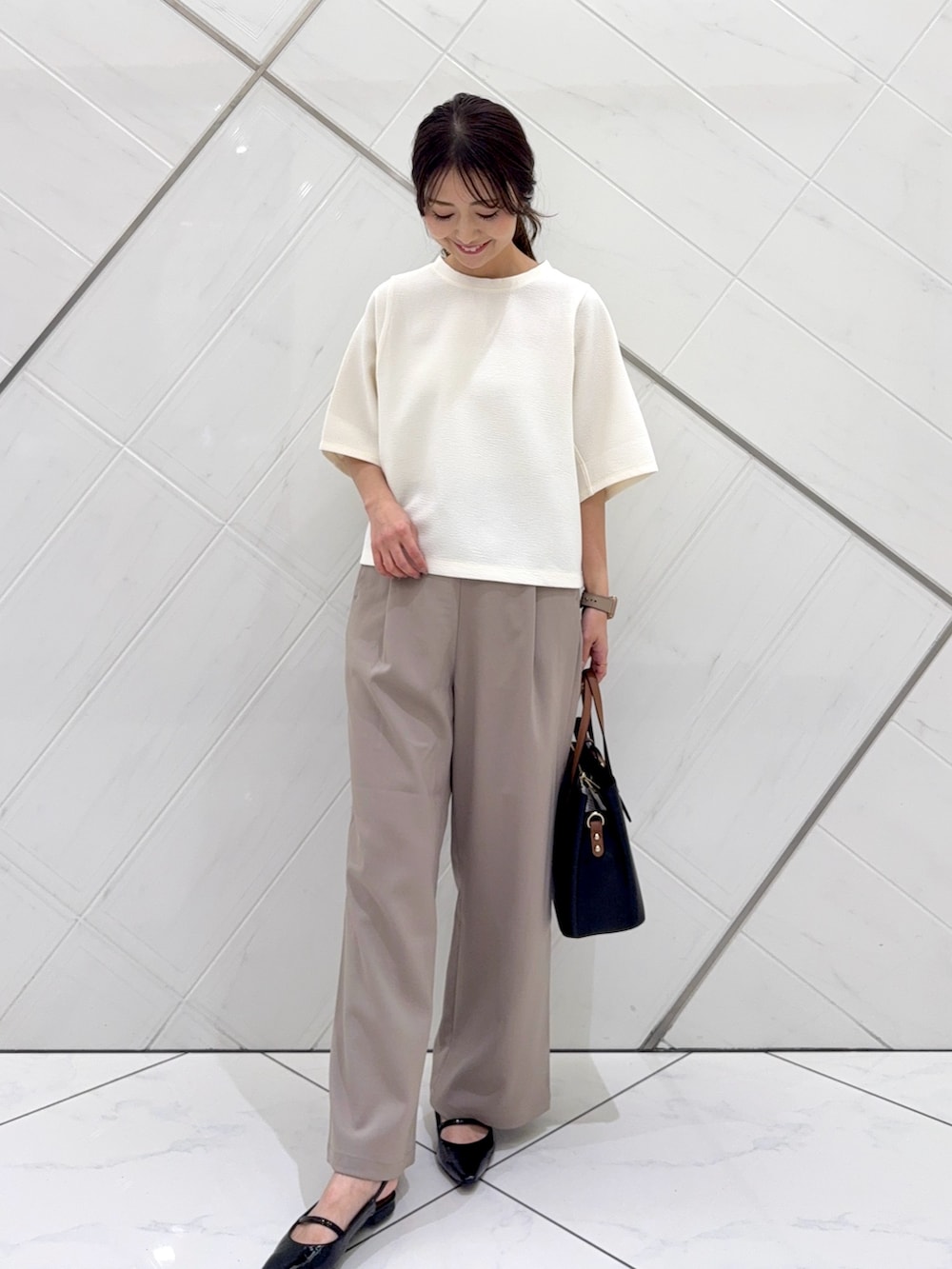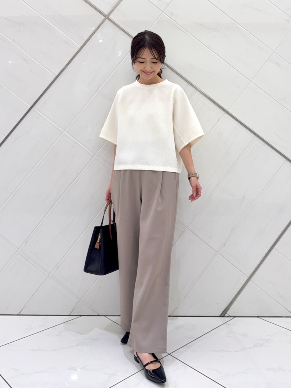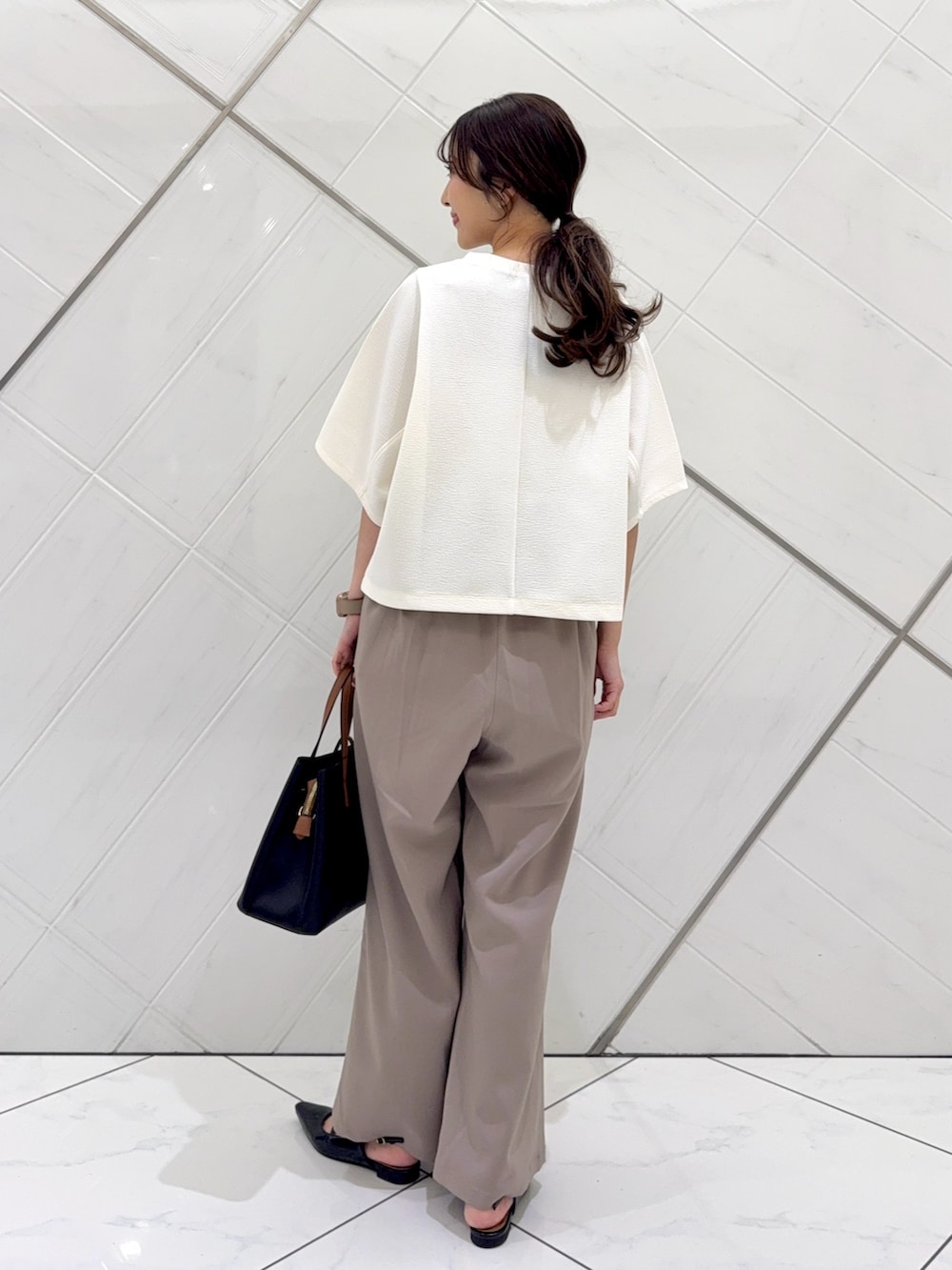 肌触りも良く、シワになりにくく、着丈もショート丈なのでボトムスとのバランスも取りやすいです。