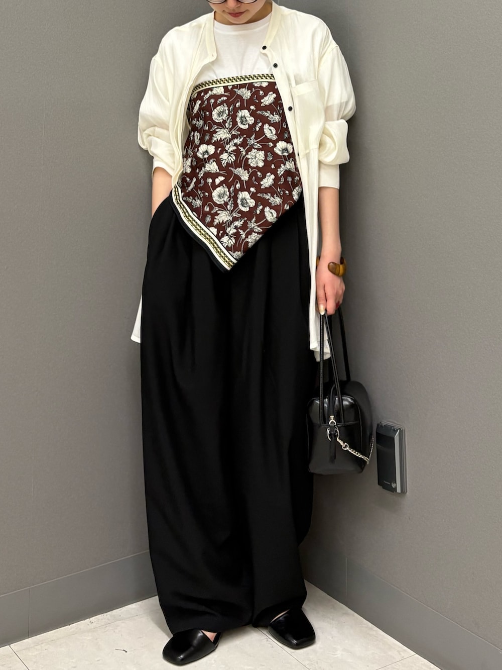 ラフなゆるっとパンツ+ツヤっとした素材の小物を組み合わせると大人のこなれ感が出てgoodです!