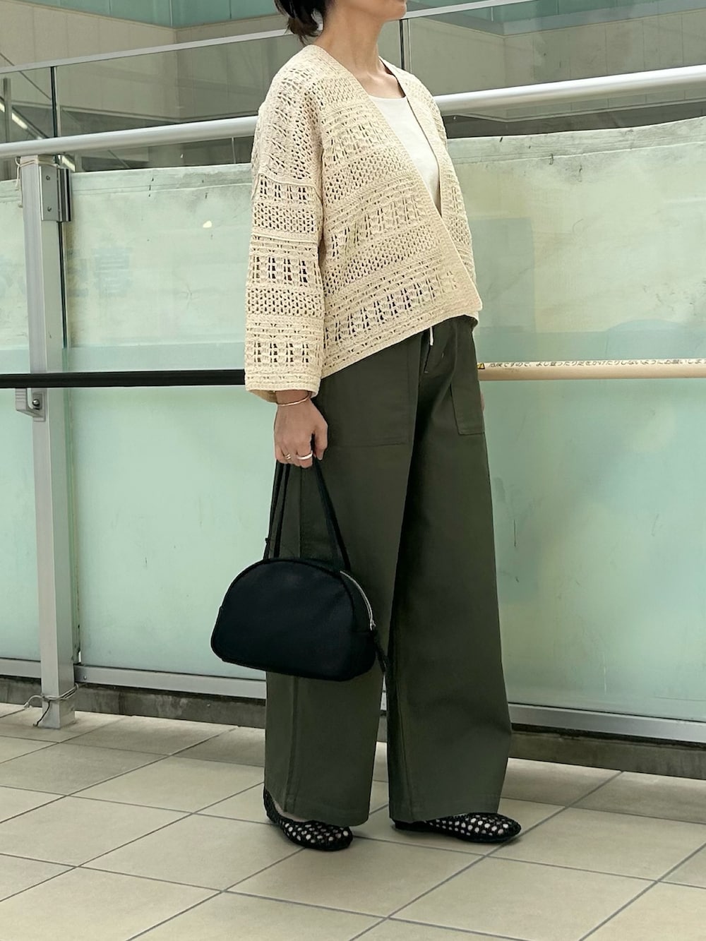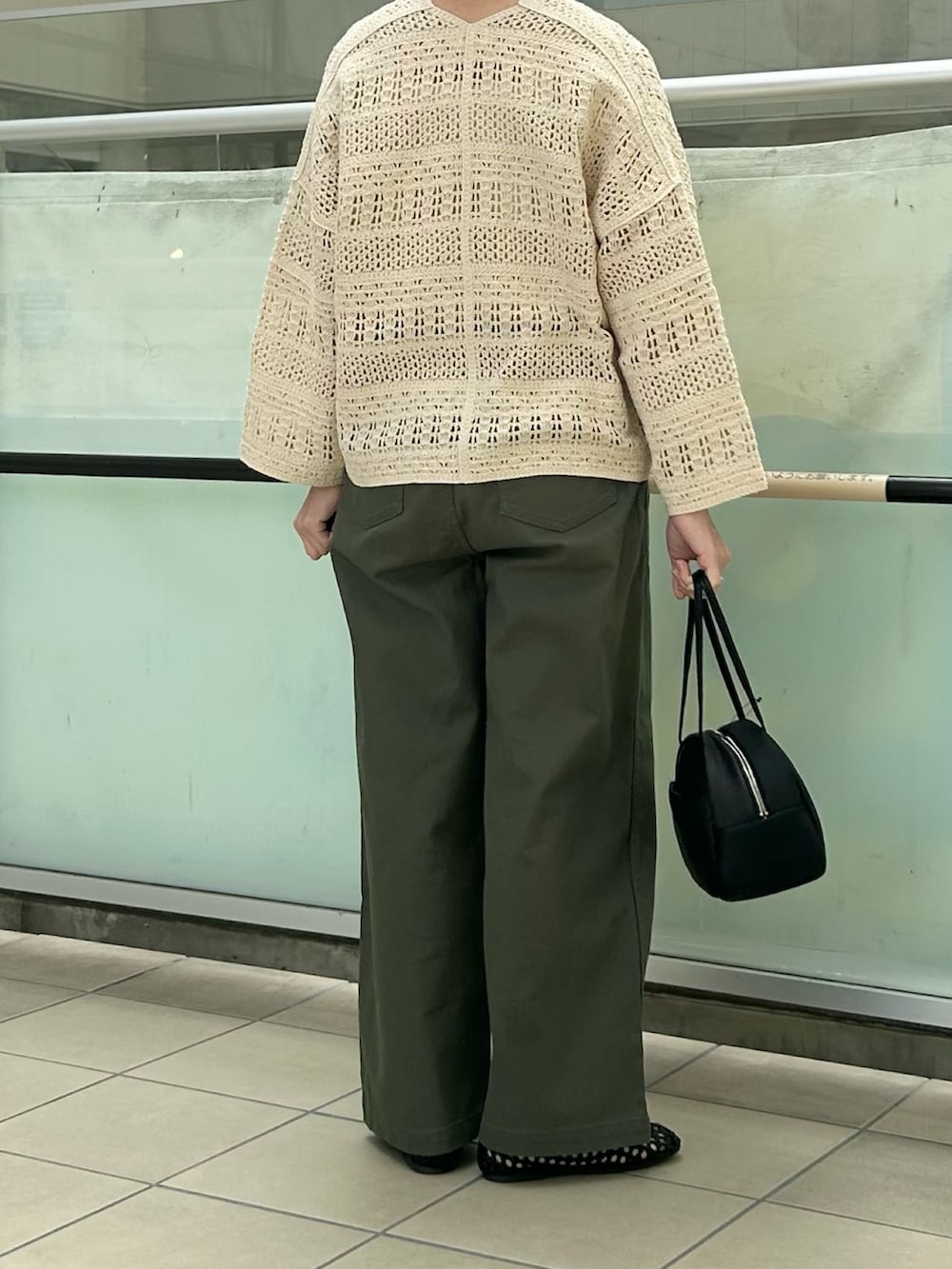 ボトムはしっかりとした生地感のパンツを合わせました。
