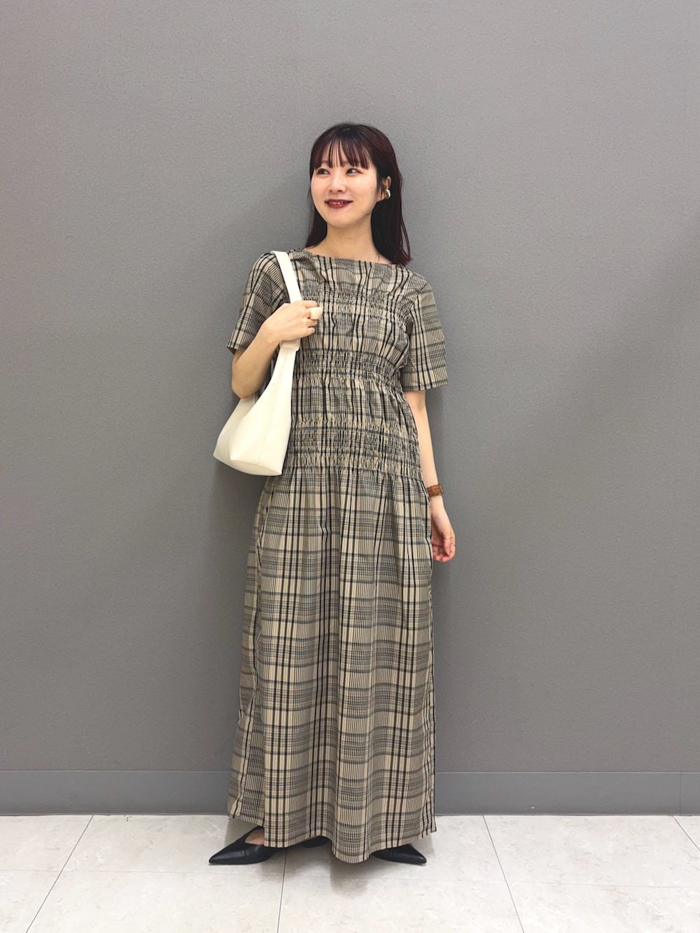 チェックシャーリングワンピース