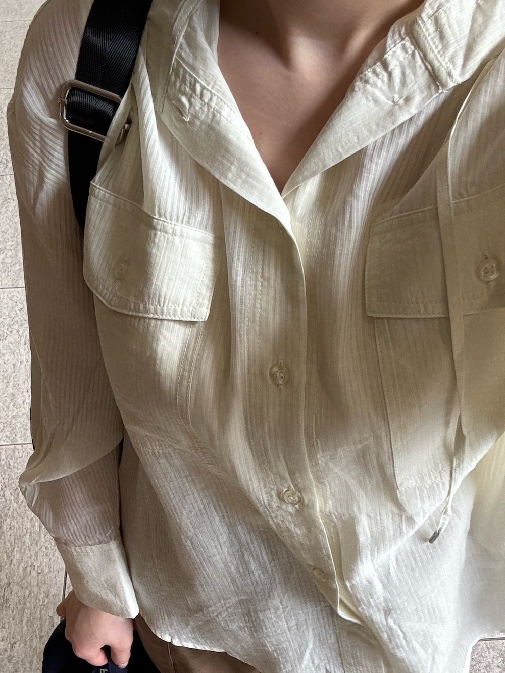 1枚で着る時はボタンを多めに開けて抜け感を出すのがポイント💡
